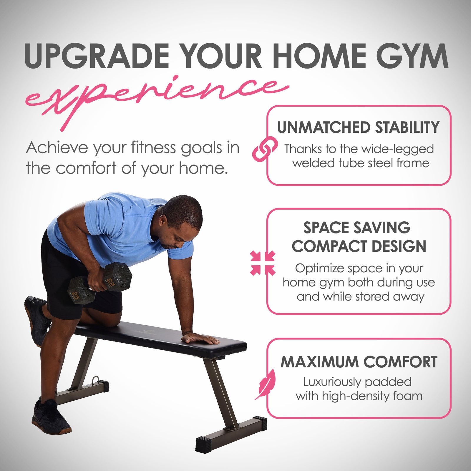 HolaHatha Steel Frame Foam Padded Flat Freeweight Bench for Weight Training