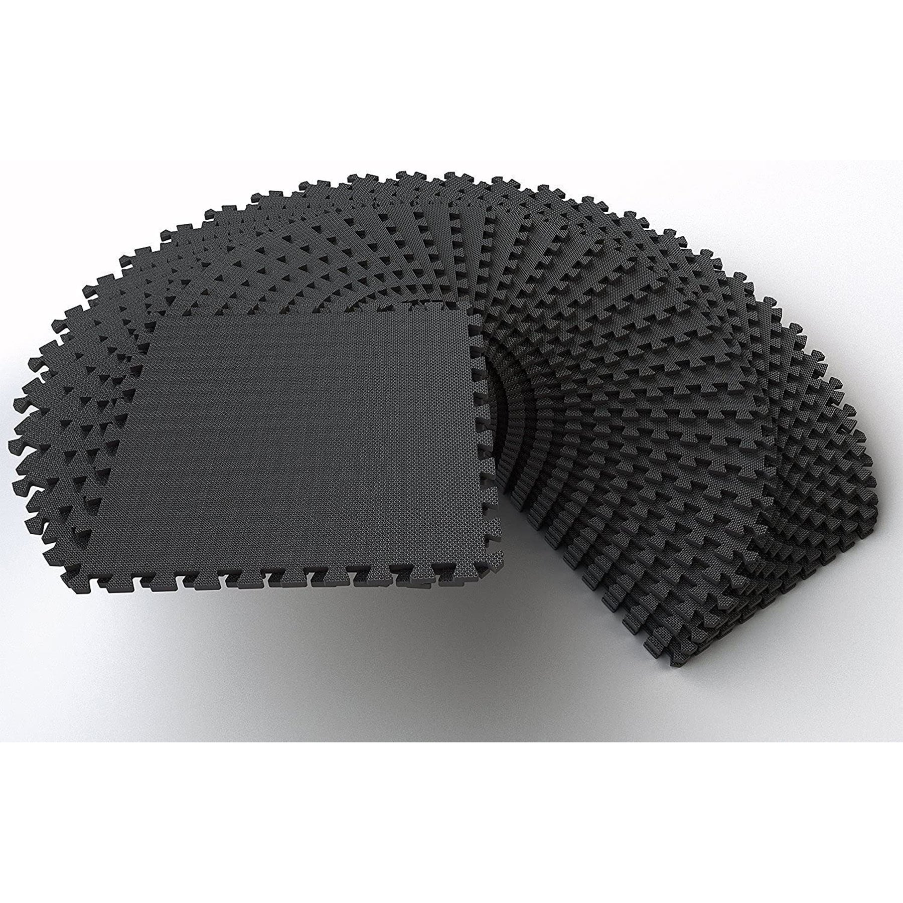 BalanceFrom Fitness 144 Sq Ft Interlocking EVA Foam Exercise Mat Tiles, Black