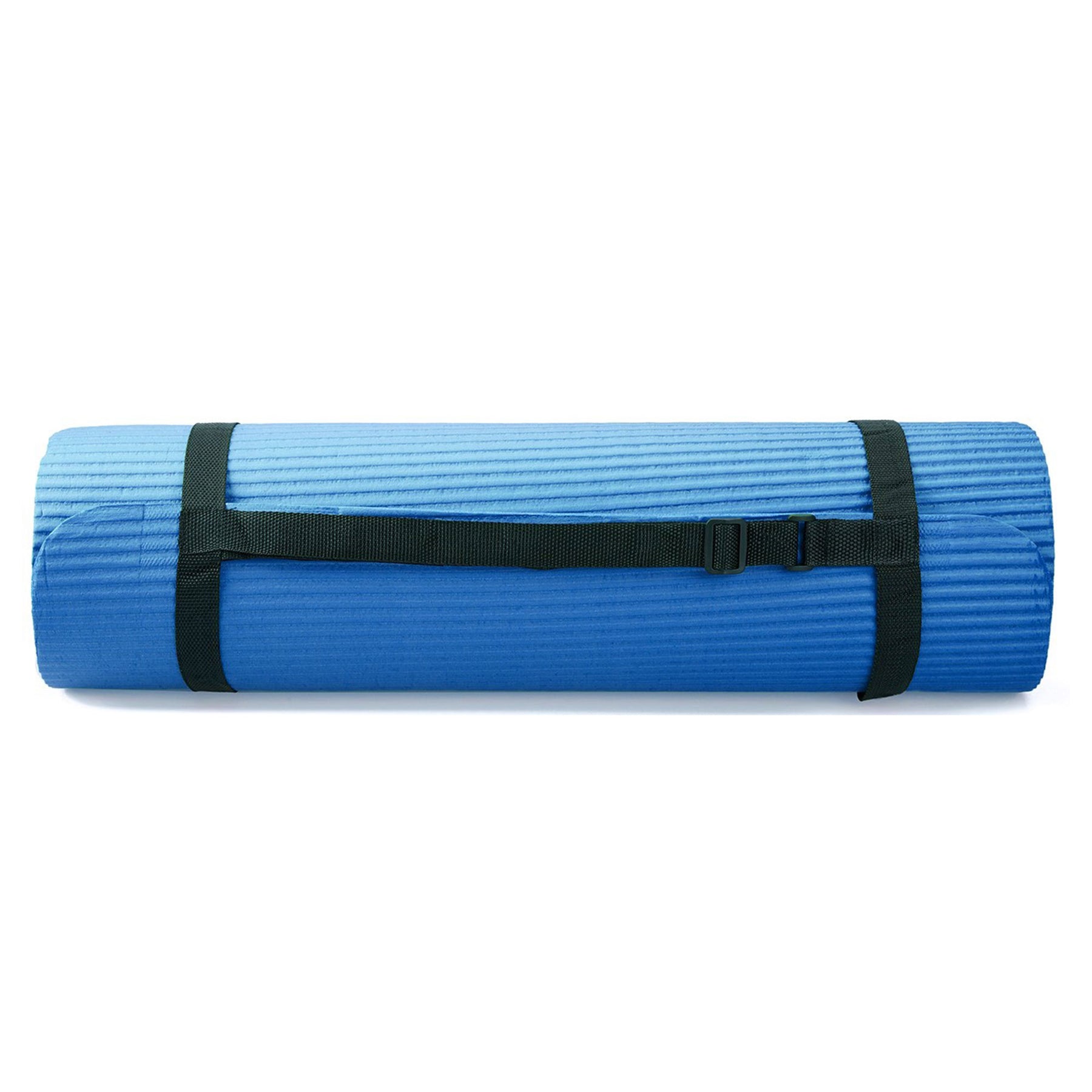 - Thick 0.5-inch yoga mat measuring 71 by 24 inches with anti-tear durability; Carrying strap for easy transportation
