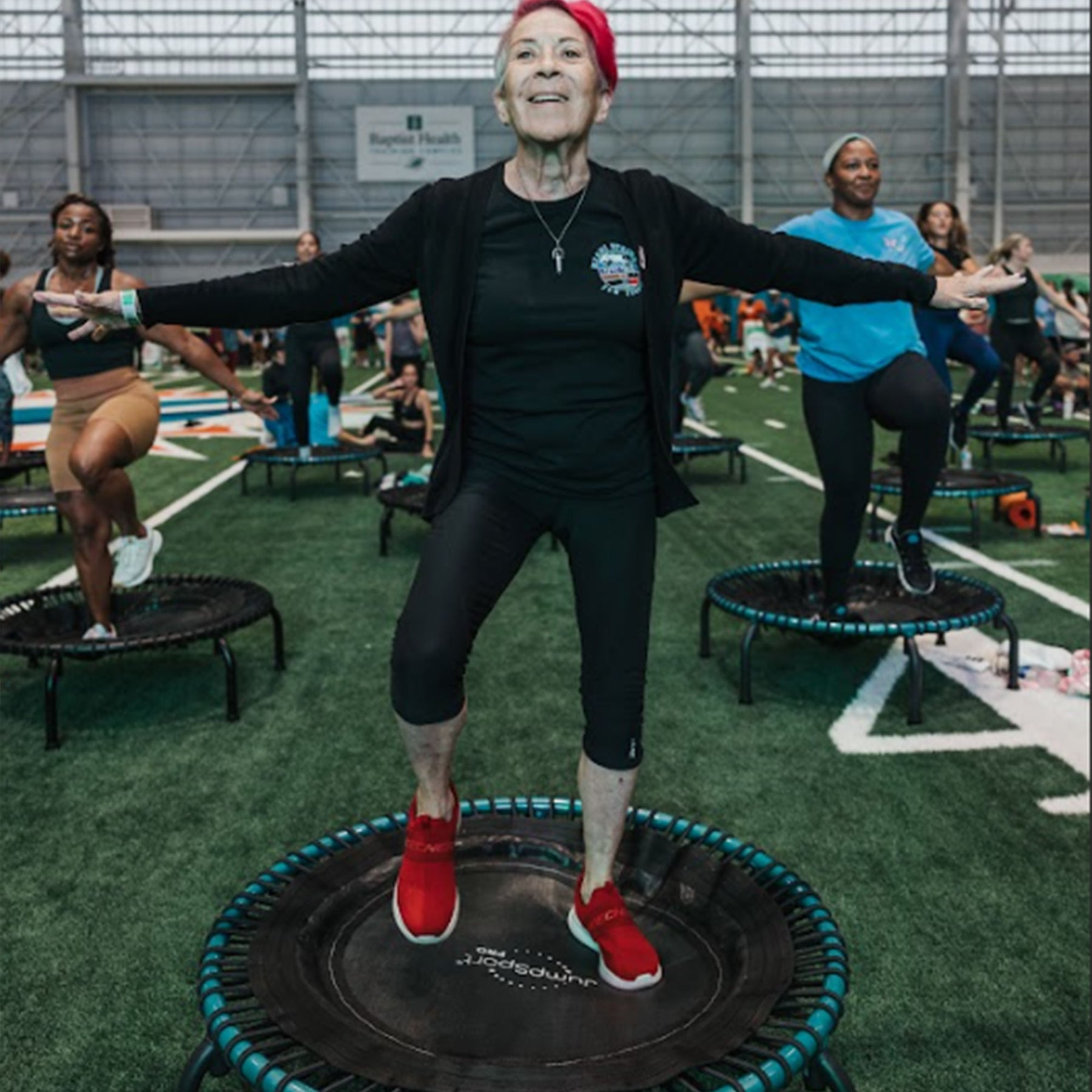 • Trampoline with a 32.5-inch jumping surface, ideal for adding versatility to workout routines for fitness enthusiasts of all levels
