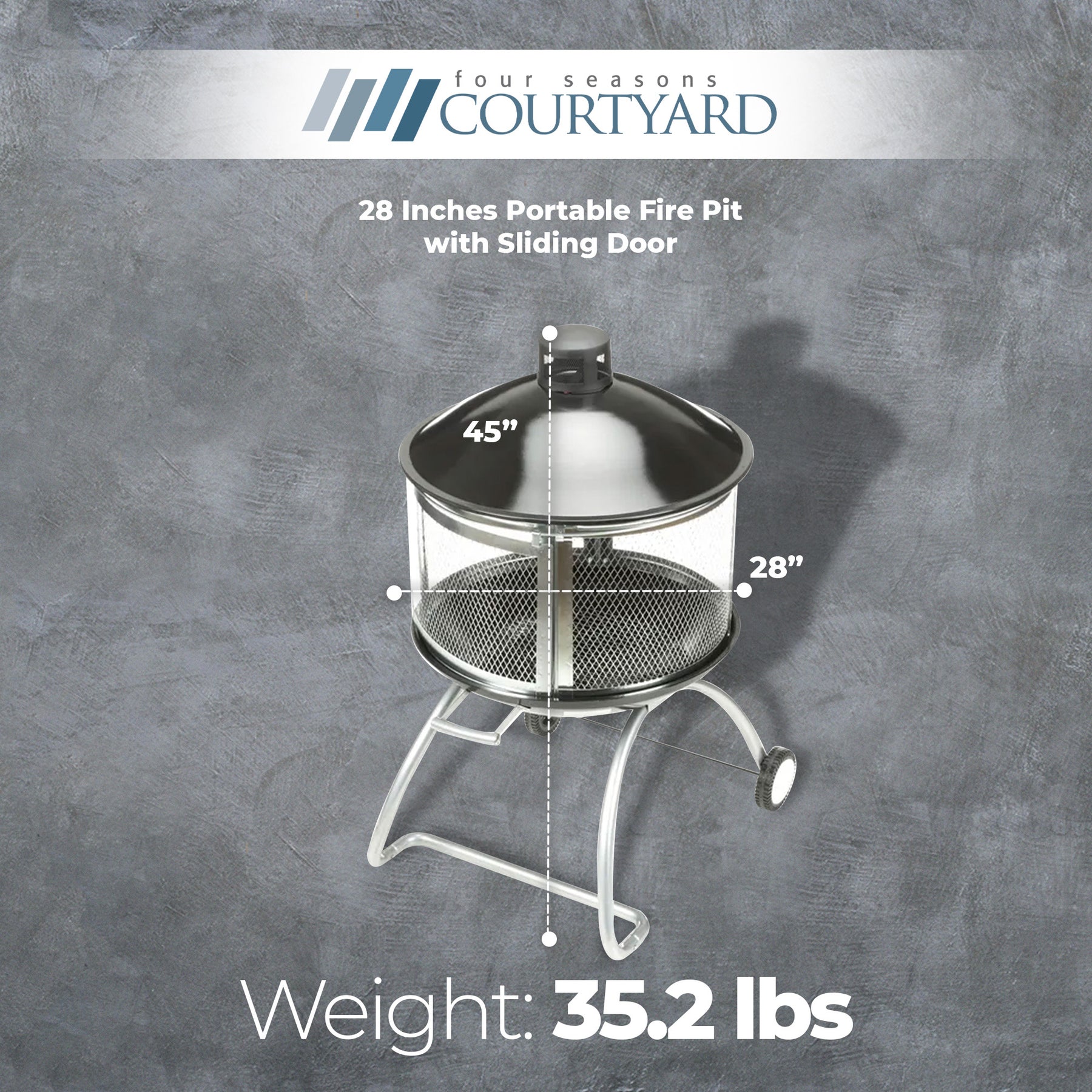 Four Seasons Courtyard Portable Fire Pit, 28" Outdoor Fireplace w/ Sliding Door