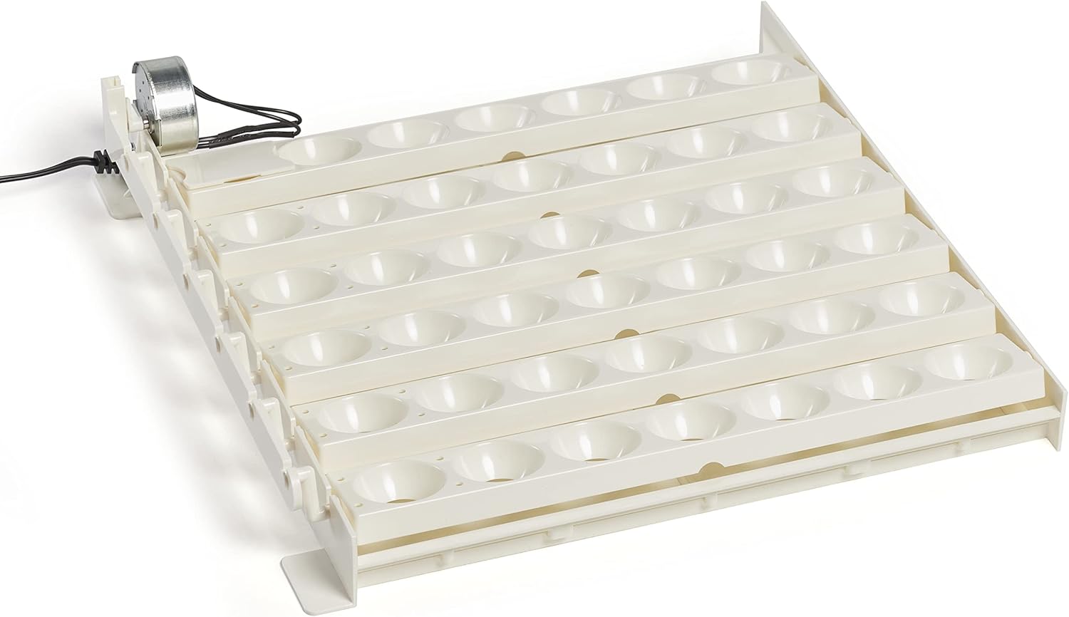 Place the automatic egg turner at the bottom of Farm Innovators 2100, 2150, 2200, or 2250 incubator models. The egg rails snap out of the incubator so that you can easily clean the piece of equipment after you're done using it. You can even throw this egg turner in the dishwasher for an efficient clean.