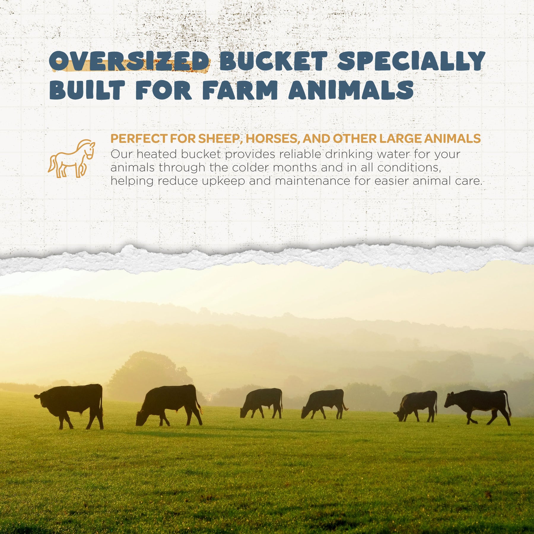 Each of our durable plastic buckets is made to stand up to the hard work and harsh weather of farming. It features a rugged plastic frame, a flat-back design for greater stability when the bucket is hung on a wall, and table measurements etched on the inside so you can track how much water your animals need. The cord has a strong ""anti-chew"" coil sheath to protect it from curious animals, and the bail features reinforced connectors for extra durability. With the bucket's convenient ""hideaway"" cord compartment, you can easily store the cord and use our innovative heated bucket year-round.
