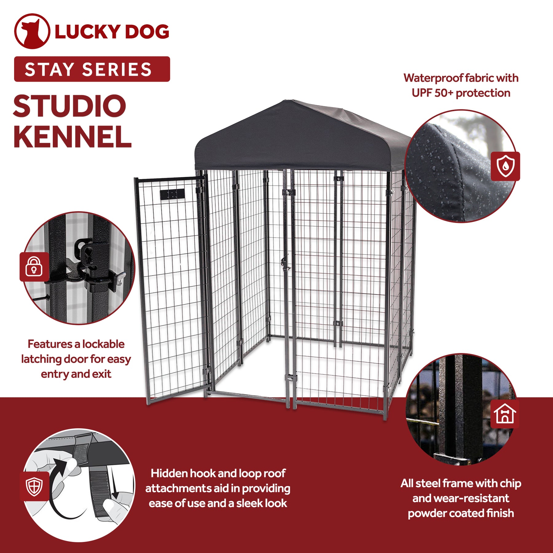 Lucky Dog STAY Series 4 x 4 x 6 Foot Roofed Steel Frame Studio Dog Kennel, Grey