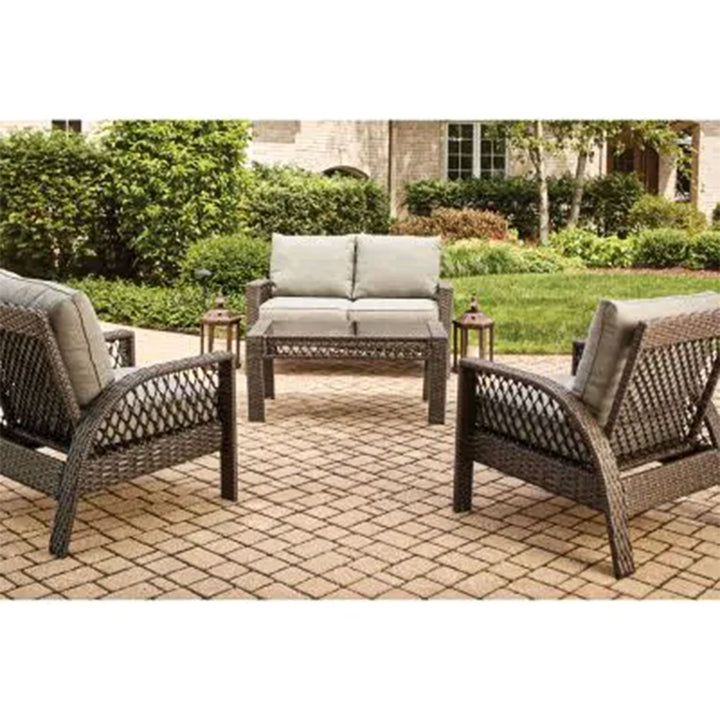 - Deep seating set with thick olefin fabric cushions, designed to resist weather, ensuring your outdoor retreat remains a cozy haven rain or shine