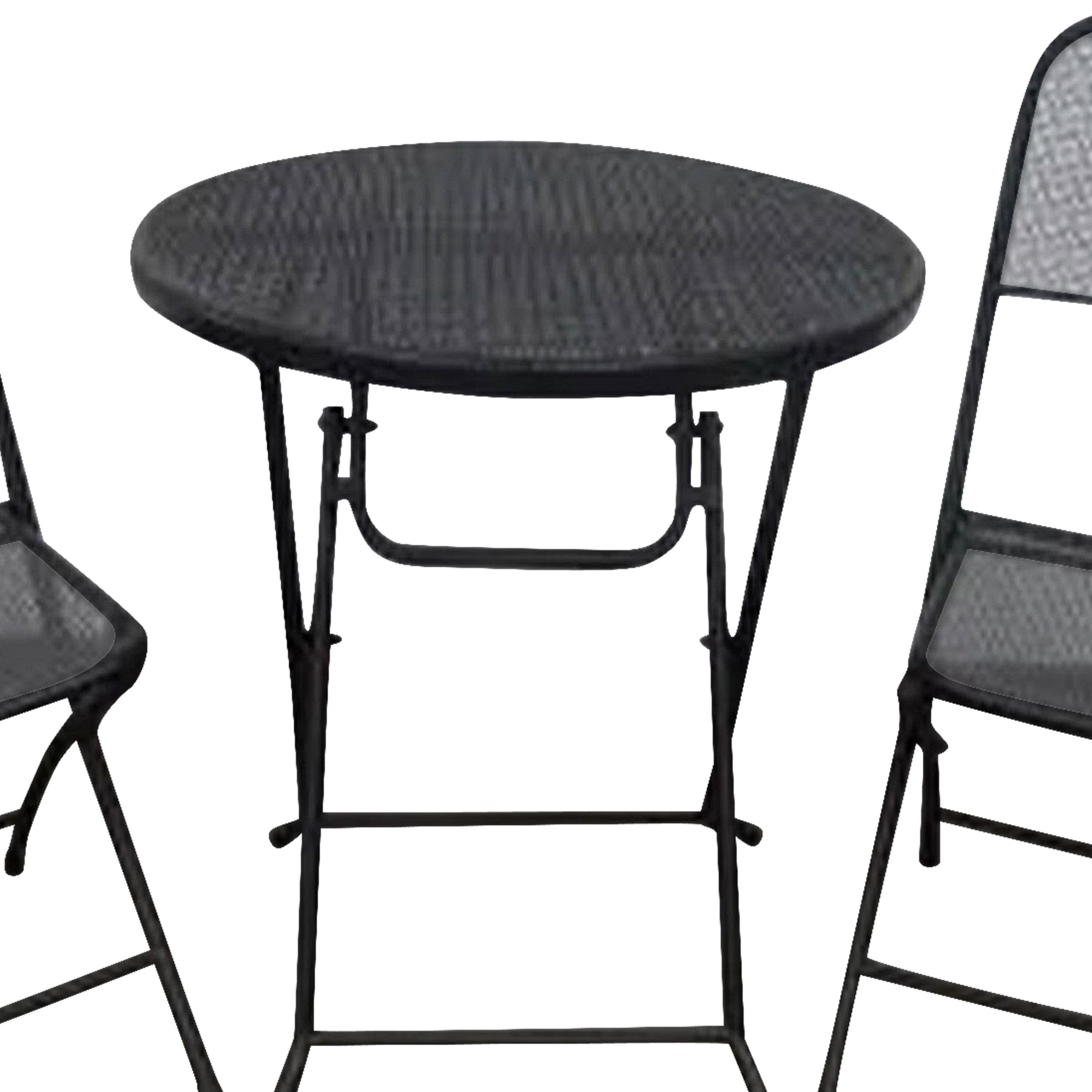 - Enjoy a cafe-style dining setup with this 3-piece bistro set, including 2 folding chairs and 1 folding bistro table for a complete dining experience