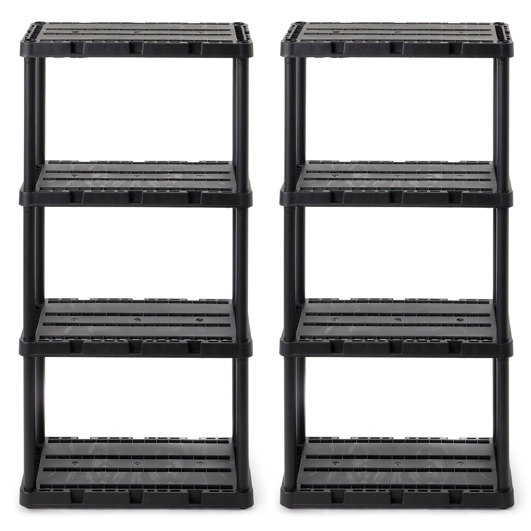 Gracious Living 4 Shelf Knect-A-Shelf Solid Light Duty Storage Unit, Black 2 Pck