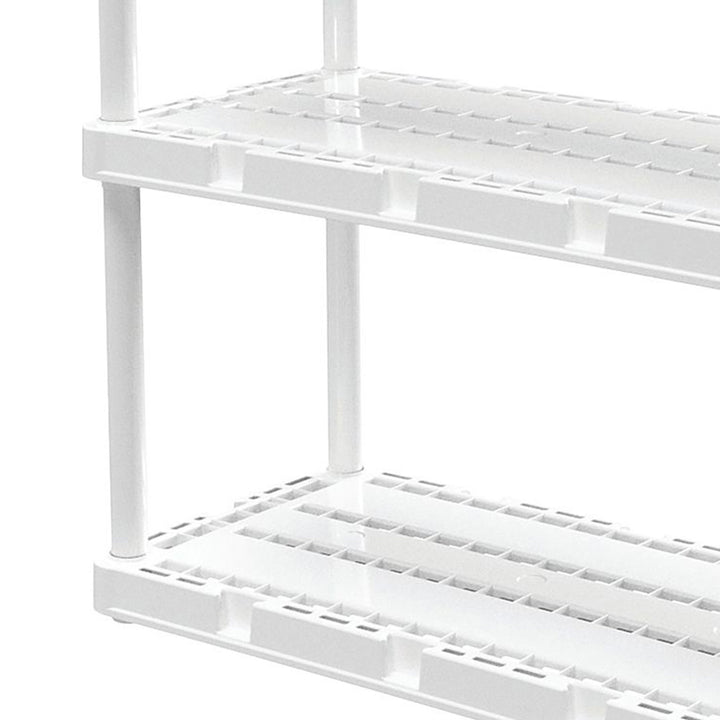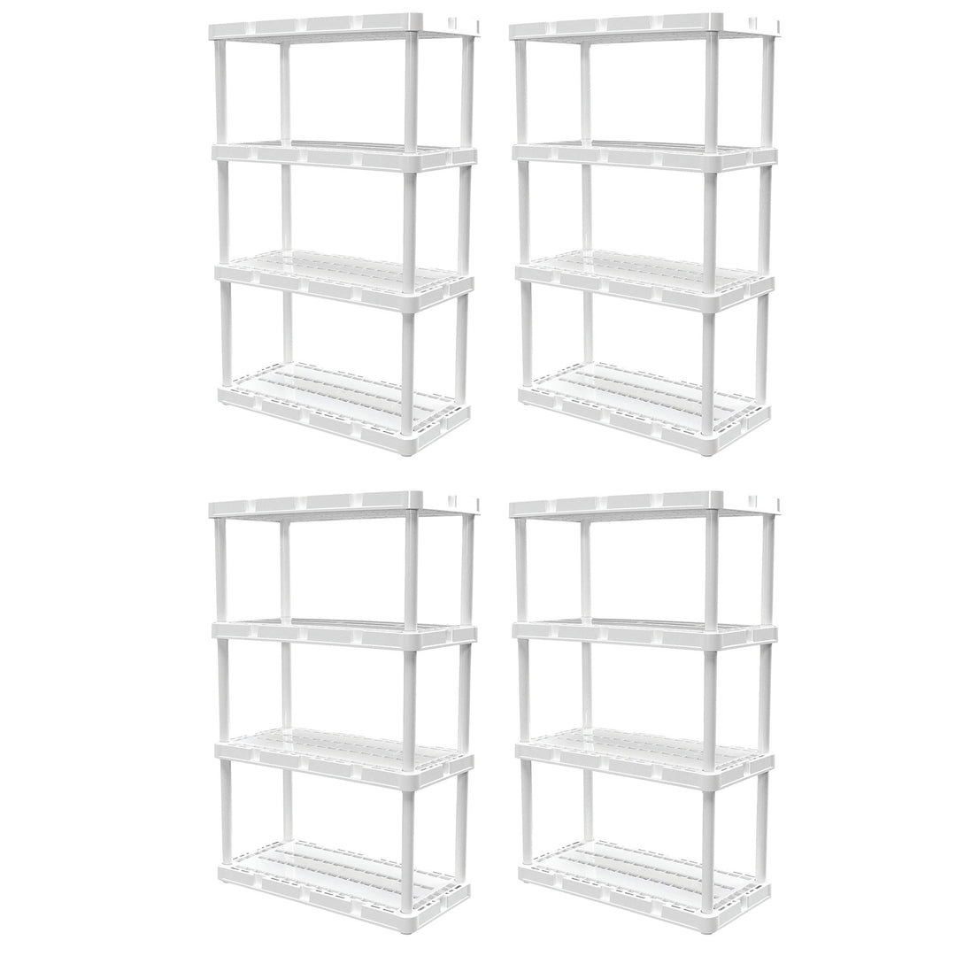 - Store items in your home or garage with the 4-pack of the heavy-duty white 4-shelf storage unit