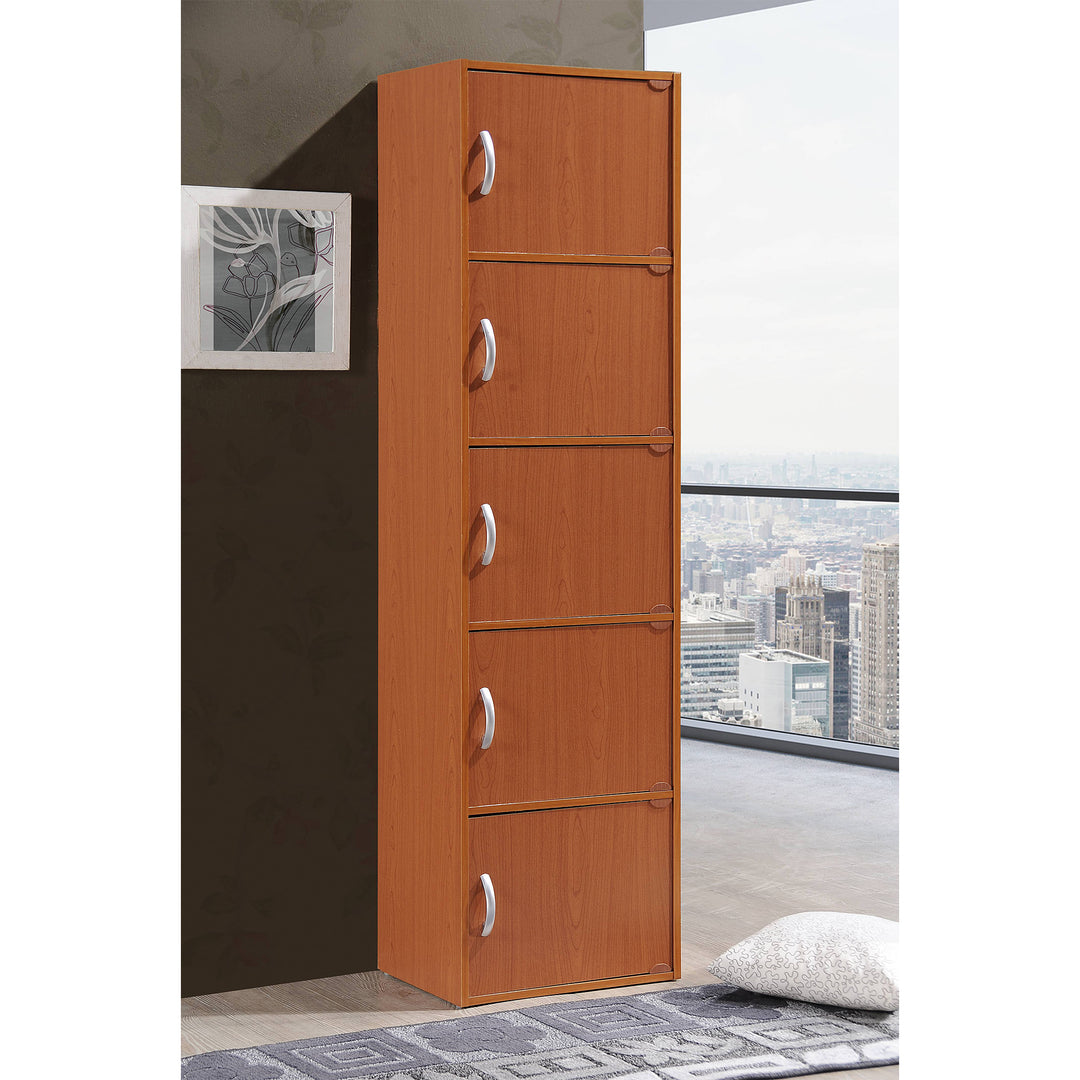 Hodedah 5 Shelf Home and Office Enclosed Organization Storage Cabinet, Cherry