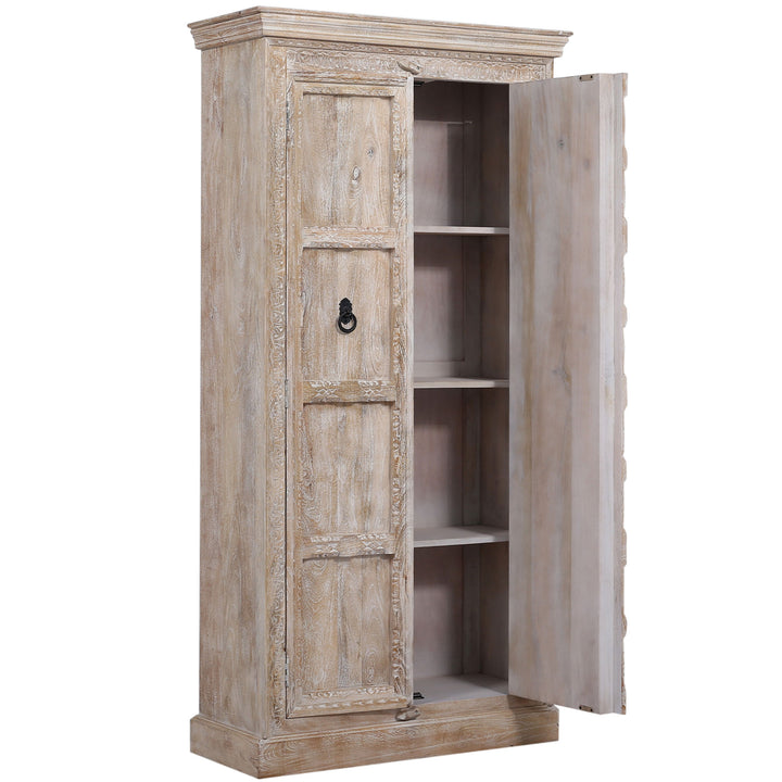 Meander into the vivid world of Indian furniture with our Mahala Wooden Cabinet, where each masterpiece is a testament to the rich cultural heritage that has inspired its creation. Abounding with masterful adaptability, spacious shelves, distressed wood grain, and loads of interior vertical space, this cabinet lets its muted hues and intricate designs captivate your senses as you immerse yourself in a world where art, history, and culture converge. The rectangular double doors offer the utmost in sophistication where art meets function, transforming your abode into a captivating haven that nurtures both body and spirit, reflecting India’s diverse culture and timeless aesthetic sensibilities.