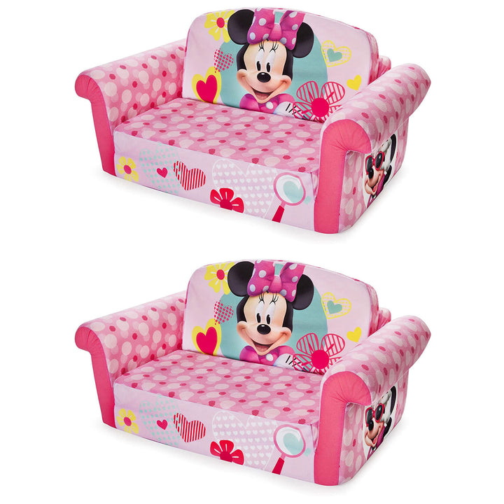 Marshmallow Furniture Kids 2 in 1 Foam Compress Sofa Bed, Minnie Mouse (2 Pack)