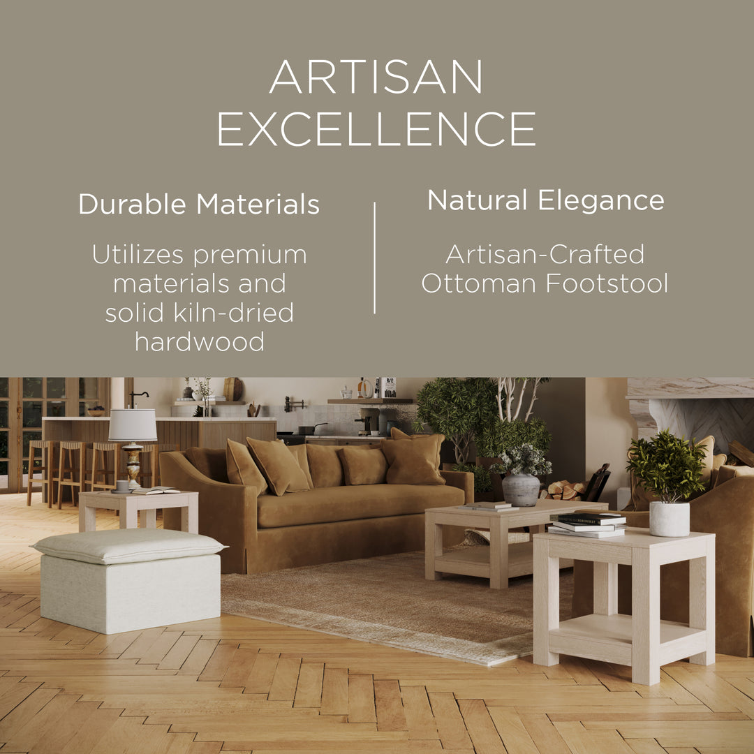 - You’ll love the premium fabric and luxe feel of this upholstered ottoman and relish in the comfort of fabric upholstery in a natural hue