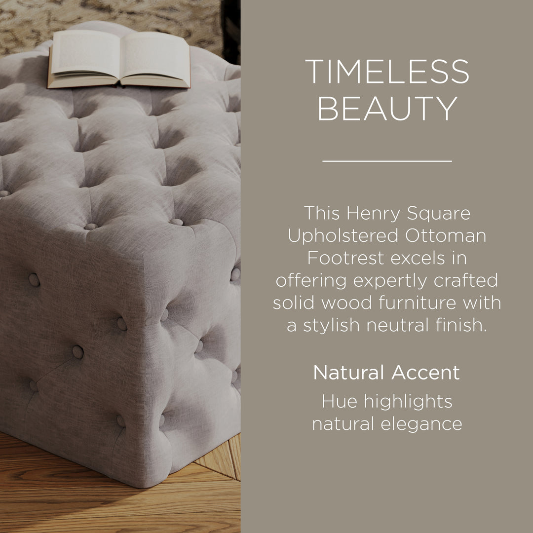 - Henry Upholstered Ottoman has a traditional aura with button-tufted detailing and premium fabric upholstery for a timeless, neutral look piece of furniture