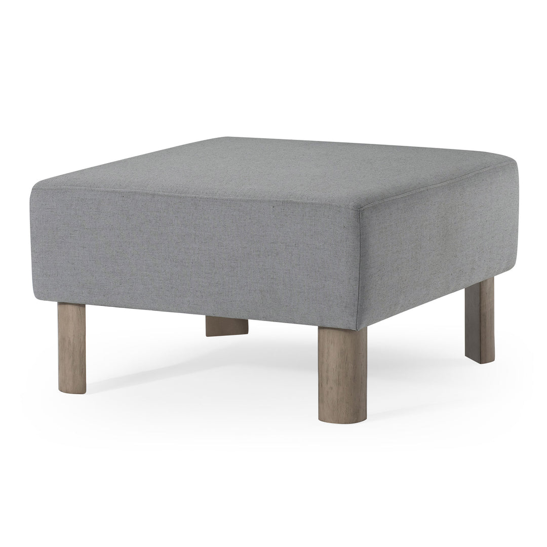 - Lena Upholstered Ottoman features a low, sleek profile, a square footprint, solid wooden legs, and premium fabric upholstery, ideal for any home space