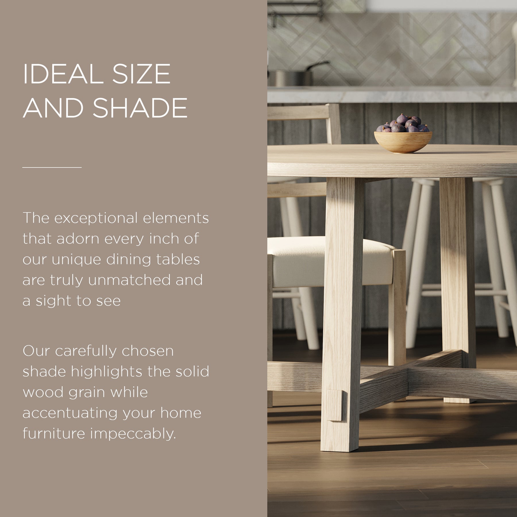 Timeless and transitional, our unique Sasha Round Circle Wood Dining Table is the epitome of comfortable and chic contemporary dining. You’ll enjoy simple pleasures as this kitchen table becomes your new favorite place for respite while you relish your morning breakfast tea or celebrate milestones with people you adore. You’ll love the small, hand-crafted details like its heavy-duty cross-beam base, luxury wooden finish, and a large table top silhouette that easily pairs with any style of seat from country upholstered to mid-century metal to natural wood. This round dining table is handcrafted from solid, kiln-dried wood and given a natural-toned finish to mesh with your home, apartment, or café’s aesthetic seamlessly. Flawless as a dinner table for casual cottage dining or dressed up as a meeting table in your office—either way, this circular table is a welcome addition to your dining and gathering endeavors. At Maven Lane, our well-made home furniture is meticulously handcrafted with methods to stand the test of time including hand finishes displaying an impeccable attention to every small detail, and sturdy mortise-and-tenon joinery techniques which promote strength and longevity. Furthermore, by utilizing premium materials and kiln-dried hardwood in our solid wood furniture, we’ve solidified the superiority of craftsmanship you’ve come to expect from Maven Lane. Be sure to view the other pieces in our furniture collection. We've carefully curated an entire medley of heirloom-quality pieces that can be mixed and matched to create the aesthetic your home has been seeking. Given the handmade nature of our products, minimal variations may occur in color, tone, and wood finish.