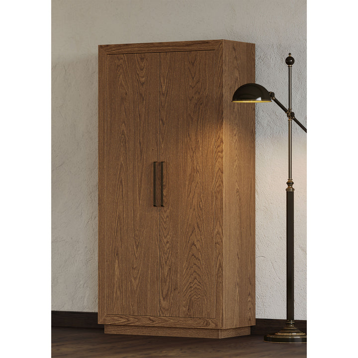 Streamlined home storage abounding with versatility and style, five spacious shelves, and ample interior vertical space, our freestanding Uma Wooden Cabinet with Doors is perfectly comfortable in your home mudroom, office, living room, or bathroom. Utilized in the most traditional sense, this real-wood pantry would be a spacious kitchen cabinet for your entertainment pieces, dining dishes, and glass stemware. If filled with your library collection, the enclosed bookcase with double doors would keep the dust away from your favorite reads. In your bedroom, you’d have an attractive armoire or wardrobe to keep your clothing and linen towels tidy and organized. The high double doors offer a sleek look, and the metal pulls lend that finishing touch to class. Pro tip: if you’re looking for a more custom built-in look, pair two Uma Storage Cabinets side-by-side—trust us, you’ll thank us later. At Maven Lane, our well-made home furniture is meticulously handcrafted with methods to stand the test of time including hand finishes displaying an impeccable attention to every small detail, and sturdy mortise-and-tenon joinery techniques which promote strength and longevity. Furthermore, by utilizing premium materials and kiln-dried hardwood in our solid wood furniture, we’ve solidified the superiority of craftsmanship you’ve come to expect from Maven Lane. Be sure to view the other pieces in our furniture collection. We've carefully curated an entire medley of heirloom-quality pieces that can be mixed and matched to create the aesthetic your home has been seeking. Given the handmade nature of our products, minimal variations may occur in color, tone, and wood finish.