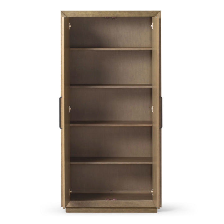 - Uma cabinet features a lofty yet streamlined silhouette offering abundant storage with 5 spacious interior shelves tucked behind double cabinet doors for storing belongings