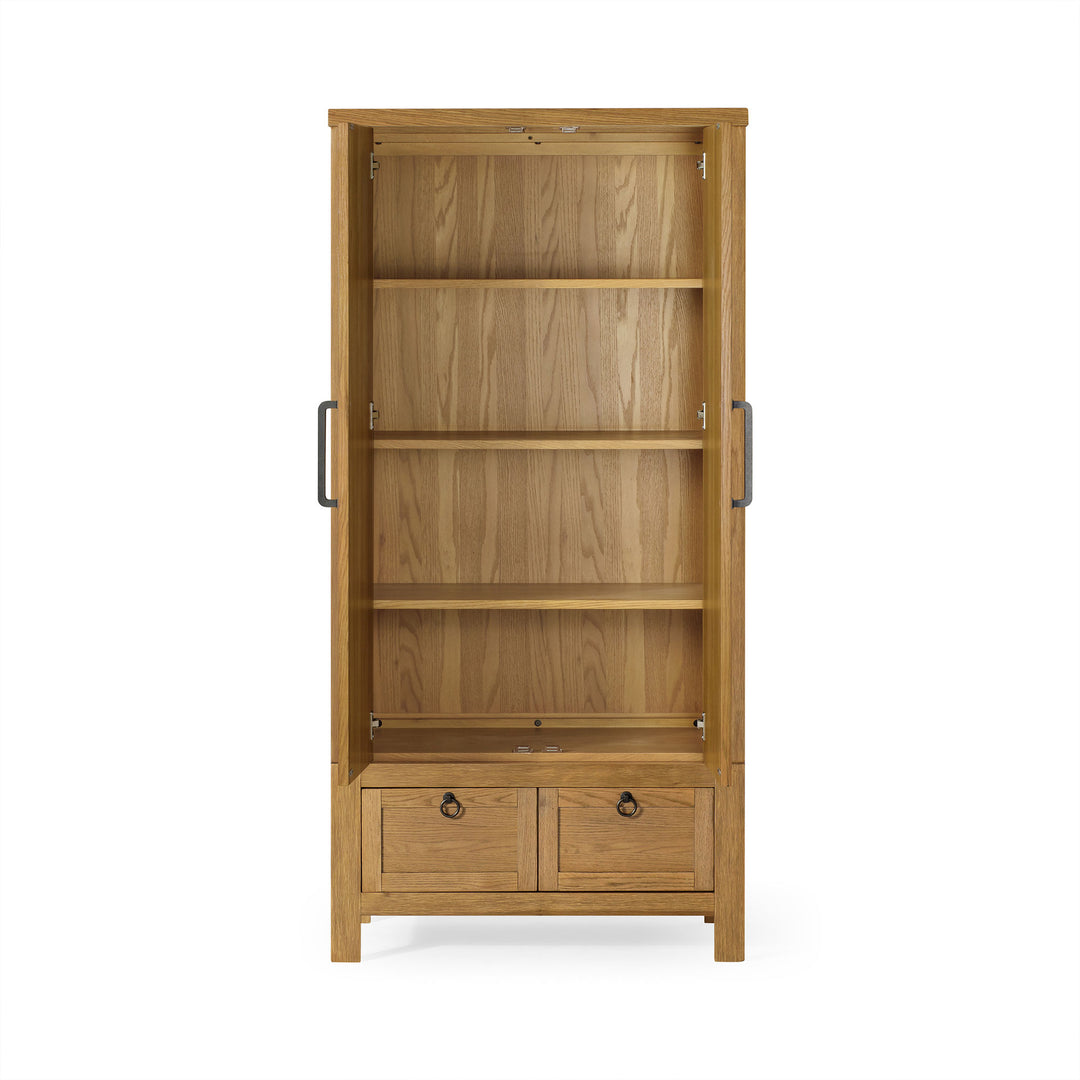 With a classic shaker-style façade and bursting with versatile home storage, our freestanding Vaughn Wooden Cabinet with Doors offers stylish solutions to answer your organization needs. With five spacious interior shelves and two deep drawers, this real-wood pantry could be a roomy kitchen cabinet for your serving pieces, flatware, and glass stemware. Fill this enclosed bookcase with your book collection and it would be a chic petite library, with the double doors keeping dust at bay. In your bedroom, you’d have an attractive armoire or wardrobe to keep your clothing and linen towels tidily organized. The perfectly coordinated metal door handles and drawer loops lend a polished finishing touch to its style. Pro tip: if you’re looking for a more built-in look, pair two Vaughn Storage Cabinets side-by-side for a custom look. At Maven Lane, our well-made home furniture is meticulously handcrafted with methods to stand the test of time including hand finishes displaying an impeccable attention to every small detail, and sturdy mortise-and-tenon joinery techniques which promote strength and longevity. Furthermore, by utilizing premium materials and kiln-dried hardwood in our solid wood furniture, we’ve solidified the superiority of craftsmanship you’ve come to expect from Maven Lane. Be sure to view the other pieces in our furniture collection. We've carefully curated an entire medley of heirloom-quality pieces that can be mixed and matched to create the aesthetic your home has been seeking. Given the handmade nature of our products, minimal variations may occur in color, tone, and wood finish.