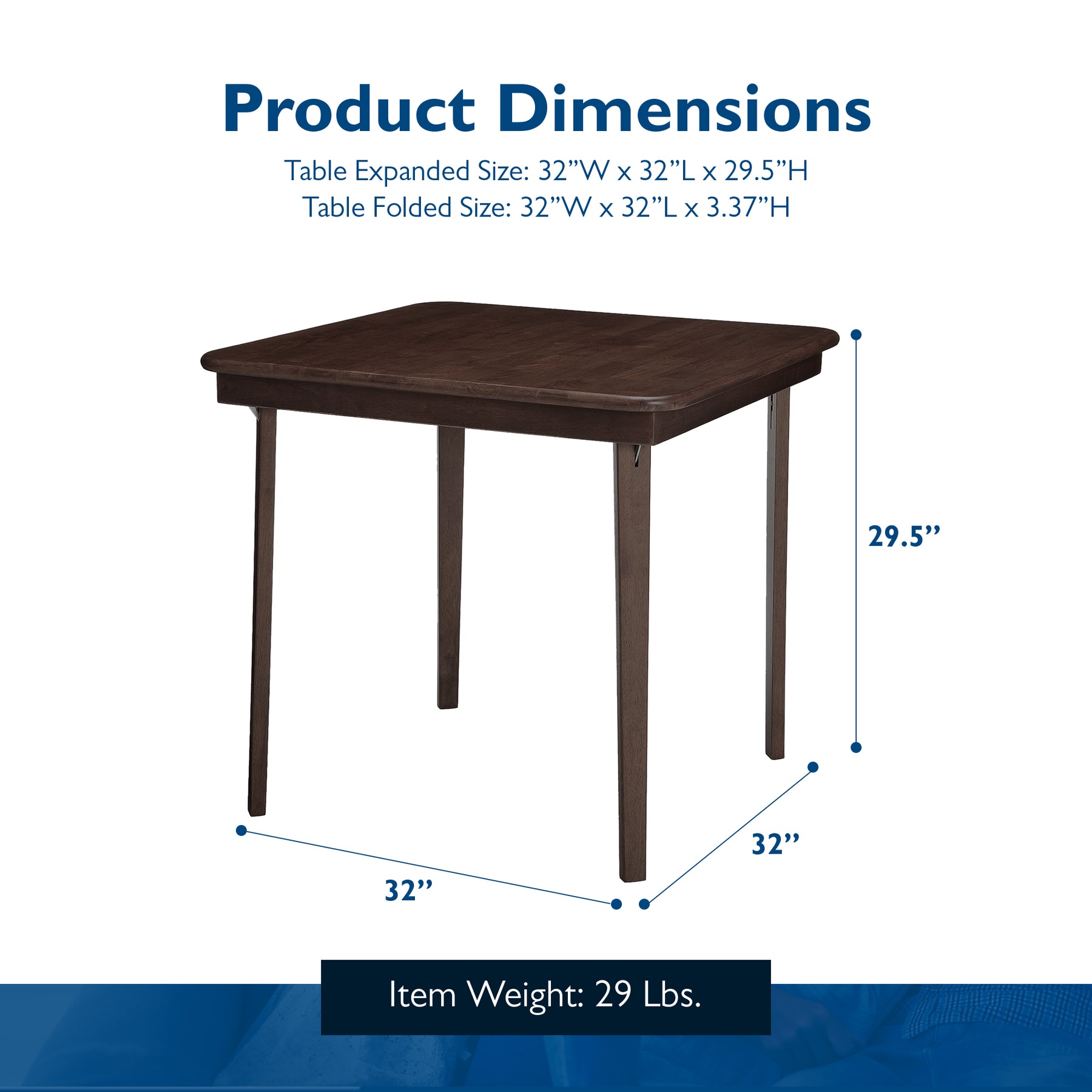 Featuring a classic straight-edge design, this coffee table adds a touch of refinement to any setting, elevating the ambiance of your space with its understated charm. No need to fret over complicated assembly instructions or cumbersome setup, this side table arrives fully assembled, ready to enhance your home with its timeless allure. Simply unfold the table legs to reveal its generous dimensions: 29.5 inches in height, 32 inches in width, and 32 inches in depth, providing ample space for your gaming adventures or additional seating needs. When the celebrations wind down and it's time to reclaim your space, the Stakmore Folding Card Table effortlessly folds to a mere 3.375 inches in depth for convenient storage. Slide this small foldable table away into a closet or tuck it neatly against a wall, preserving both space and style in your home until the next occasion calls for its graceful presence.