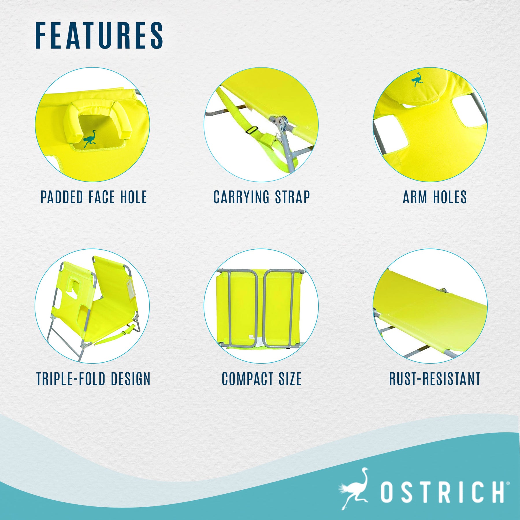 Ostrich Chaise Lounge Foldable Sunbathing Beach Lawn Chair, Neon Green (3 Pack)