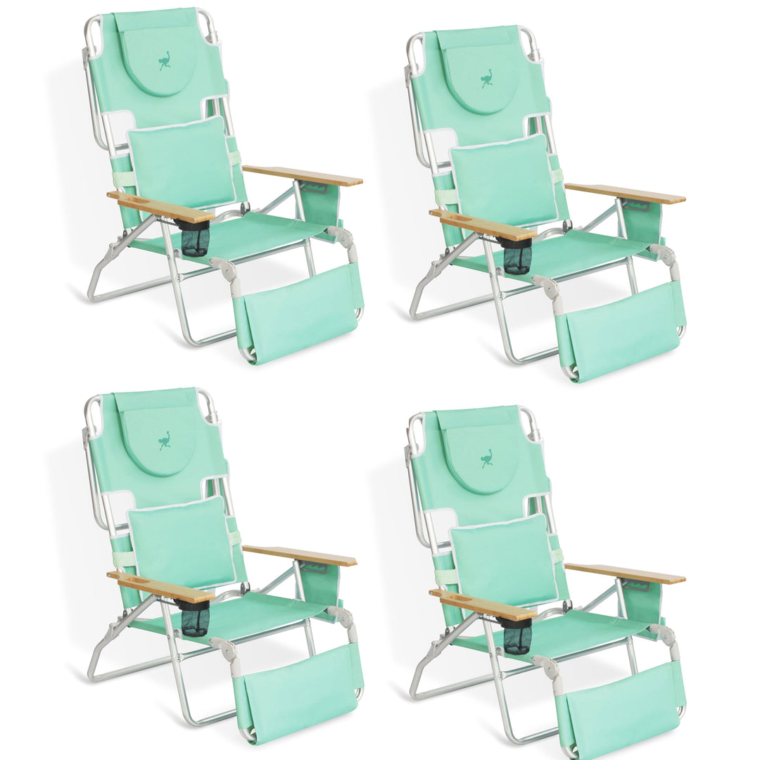 Ostrich Deluxe Padded 3-N-1 Outdoor Folding Reclining Beach Chair, Teal (4 Pack)