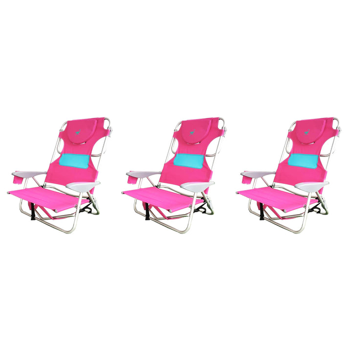 Ostrich Outdoor Beach Ladies Comfort On Your Back Beach Chair, Pink (3 Pack)