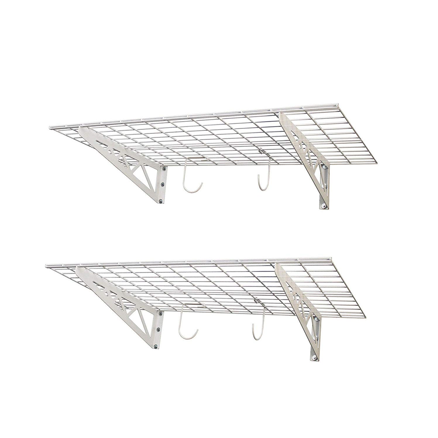 SafeRack wire garage shelves feature high-grade hardware to keep your storage items safe for years. They are easy to install and include a four-screw wall anchoring set, which helps secure the shelves in place. The heavy-duty construction prevents the shelves from rattling or moving even while you take larger items off. Plus, the gloss white powder-coated finish fits in with all modern homes.