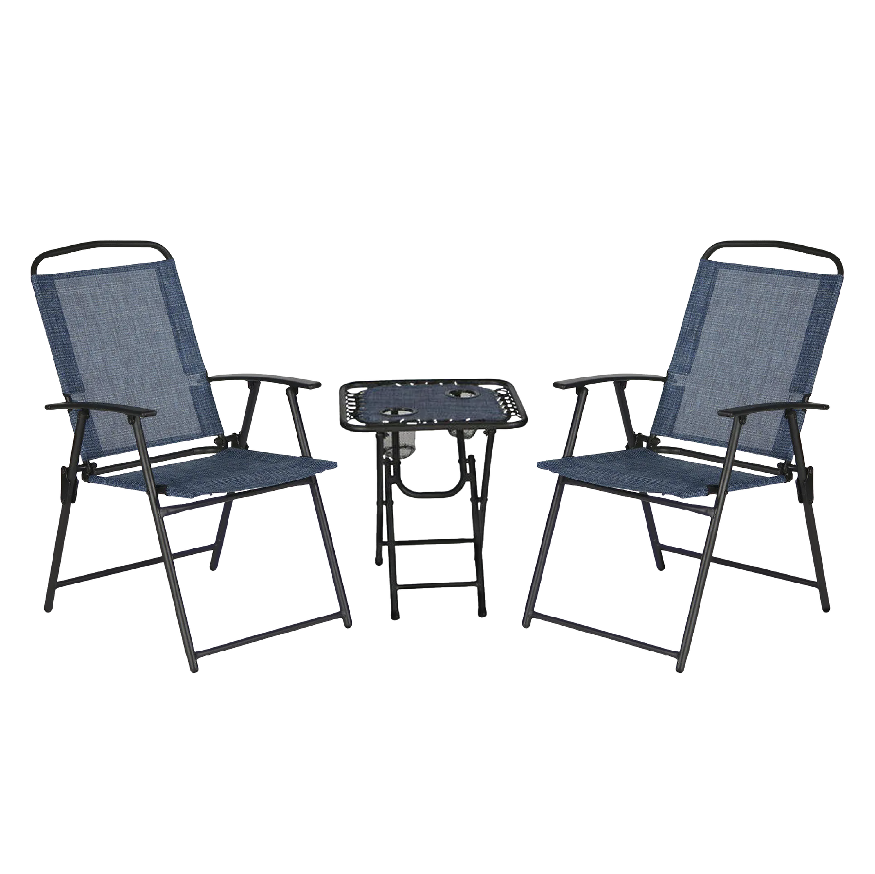 Trappers Peak 3-Piece Folding Outdoor Patio Chairs and Table, Blue