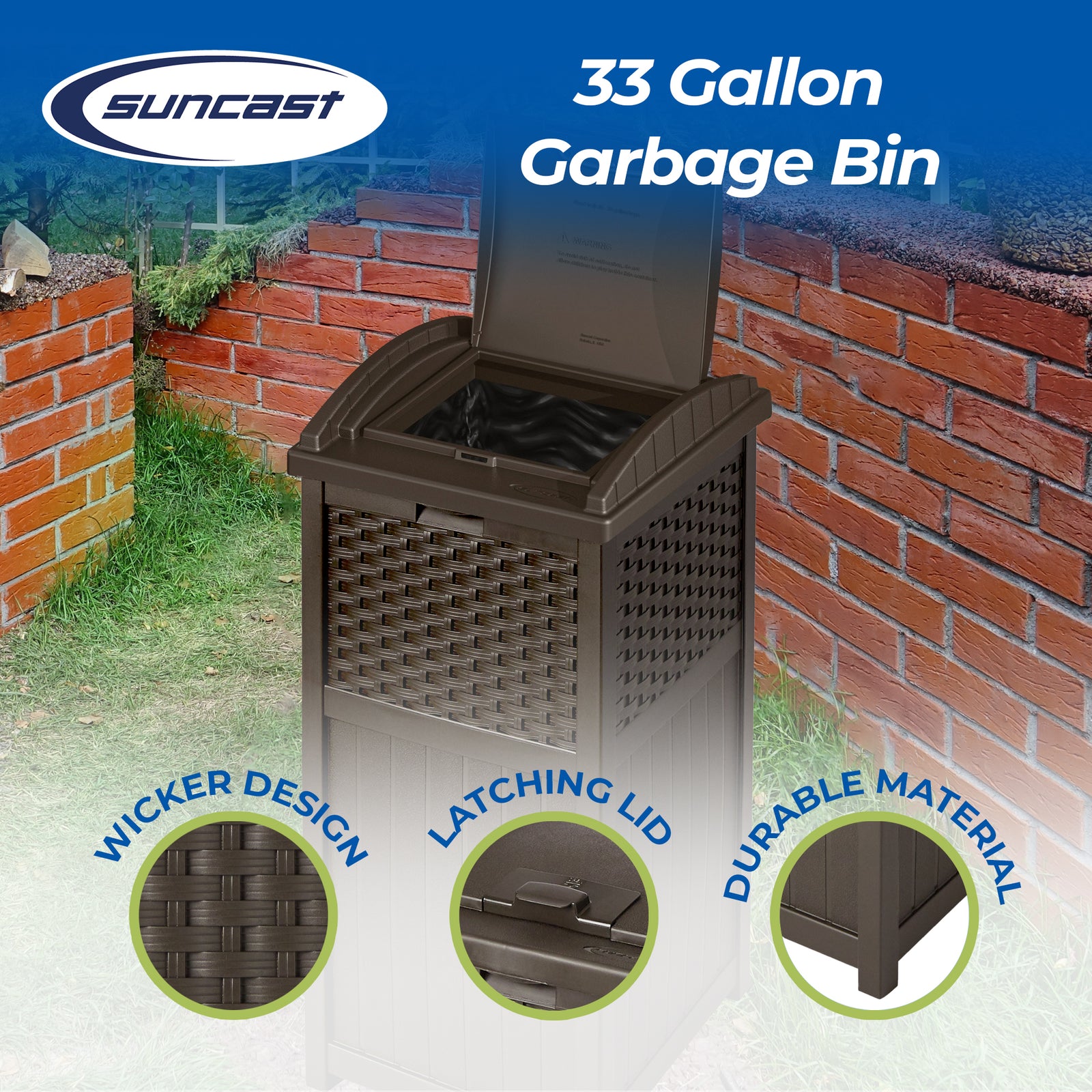 Suncast Trash Hideaway Outdoor Garbage & Outdoor Patio Storage Deck Box, Brown