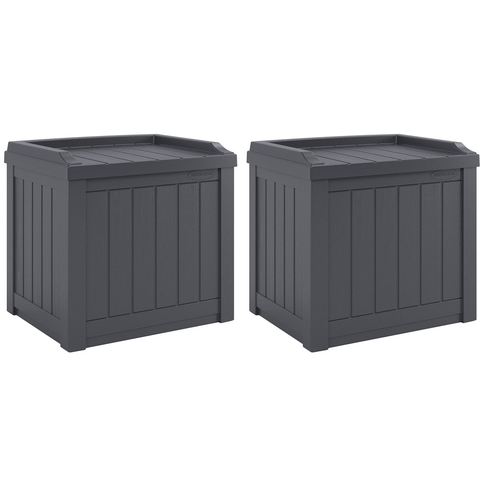 Suncast 22 Gal Outdoor Patio Small Deck Box w/Storage Seat, Cyberspace (2 Pack)