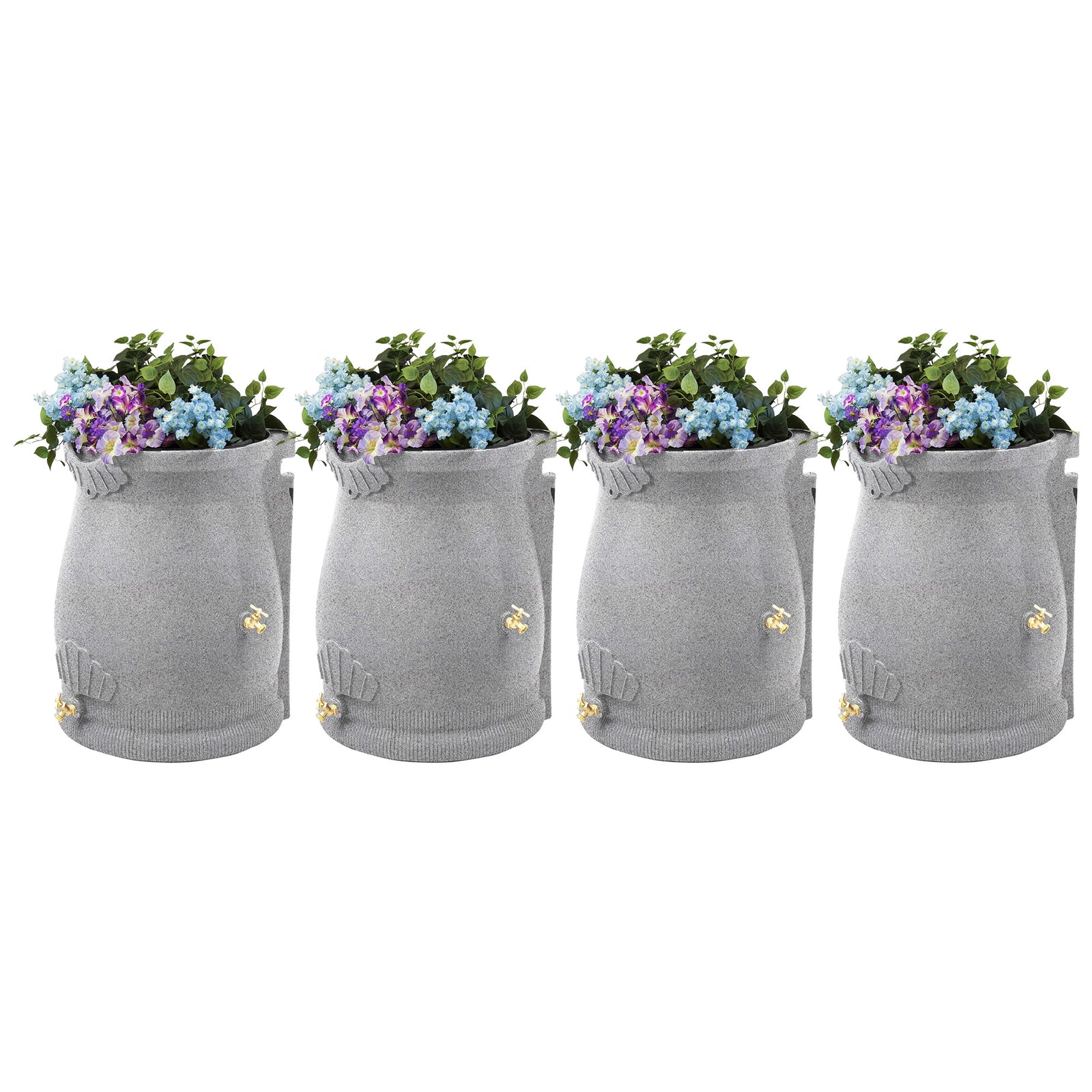 - Set of (4) 50-gallon rain barrel urns by Good Ideas that add style and beauty to your outdoor space while helping the environment by conserving water