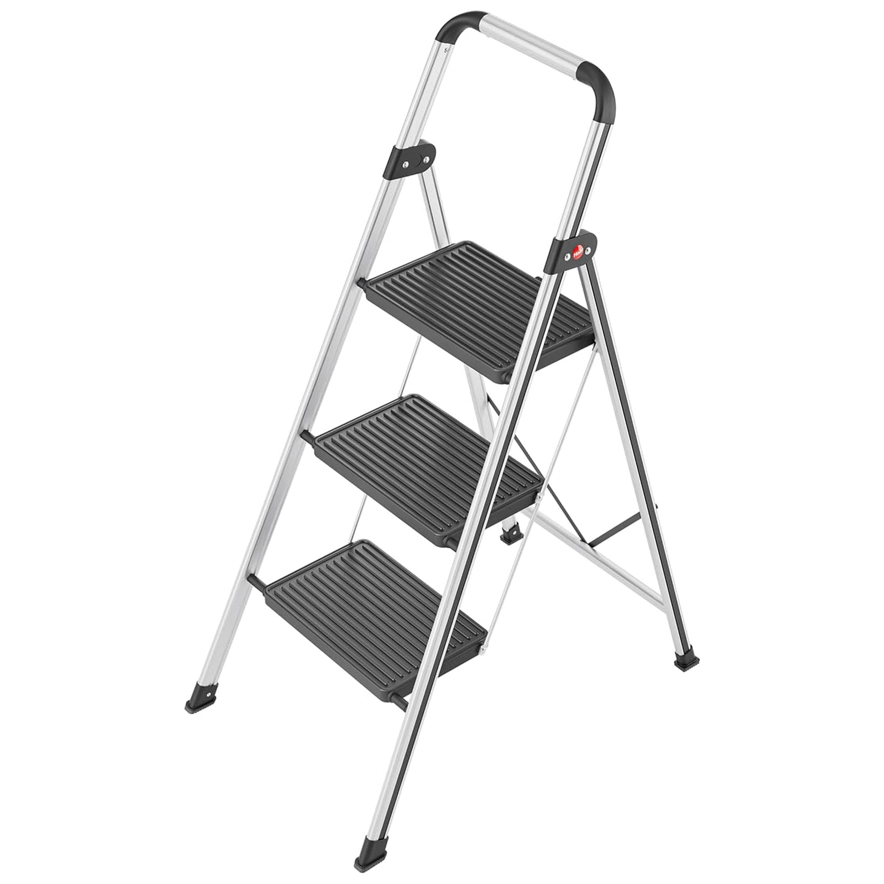 Hailo Folding Step Stool, Non-Slip 3 Step Ladder for Home & Kitchen, K71, Silver