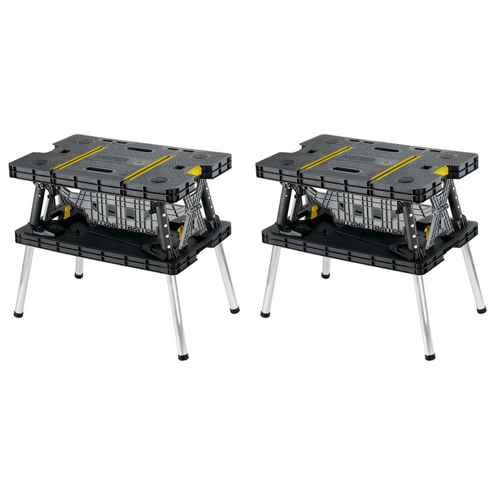 Keter Folding Portable Workbench Sawhorse w/12 In Clamps, Black/Yellow (2 Pack)