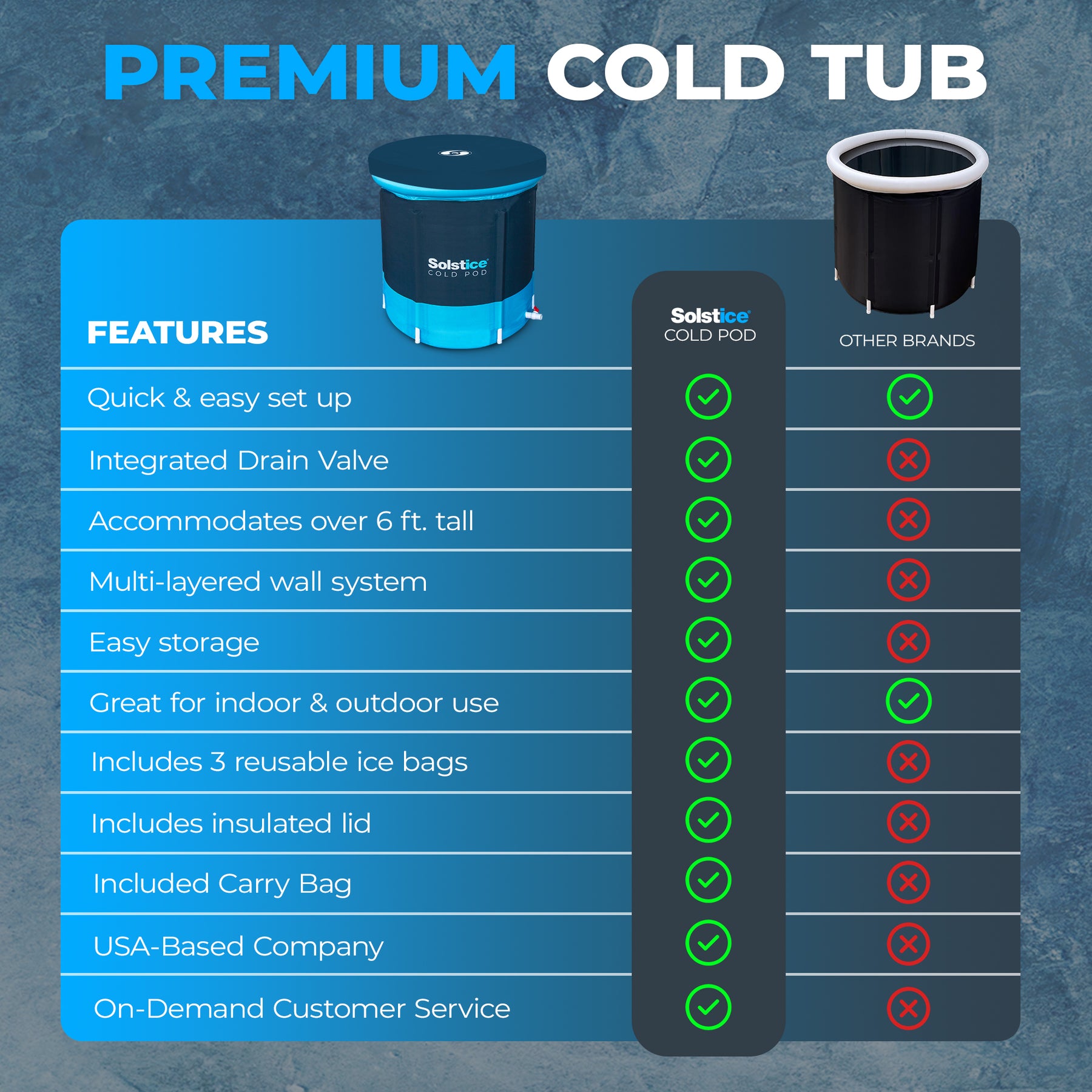 Immerse yourself in the pioneering Solstice Cold Pod, a cutting-edge solution designed for those who take wellness seriously. This isn't just a cold plunge; it's a revolution in personal health, meticulously engineered with INSULATING TECHNOLOGY that sets a new standard for thermal efficiency. The Cold Pod's advanced multi-layered wall system dramatically reduces ice melt and temperature spikes, granting you longer, more effective soaks while the temperature of your water.