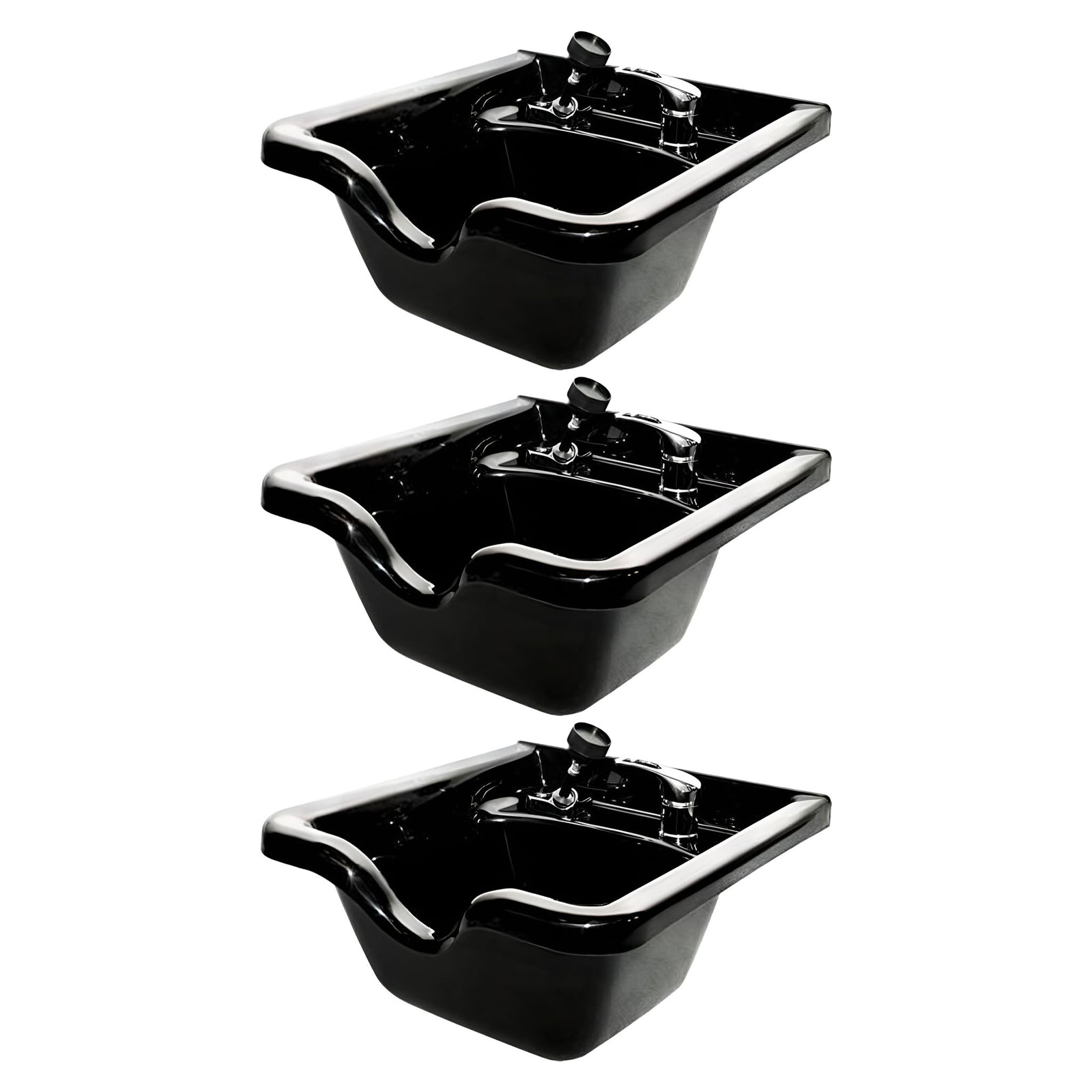 PureSana Chromium 3 Pack Plastic Salon Bowls Square Sink Tubs for Washing, Black