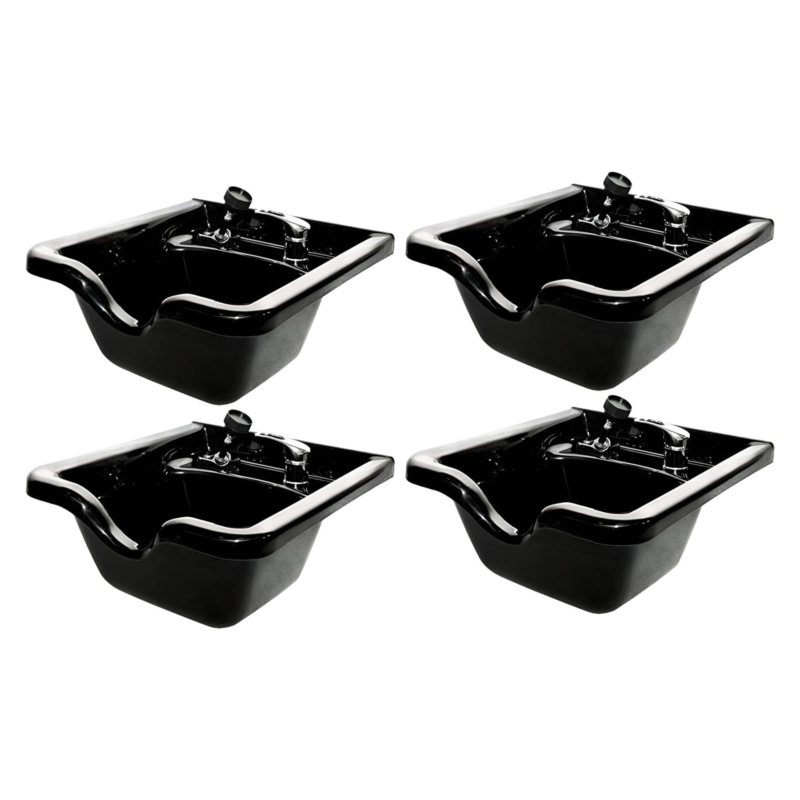 PureSana Chromium 4 Pack Plastic Salon Bowls Square Sink Tubs for Washing, Black
