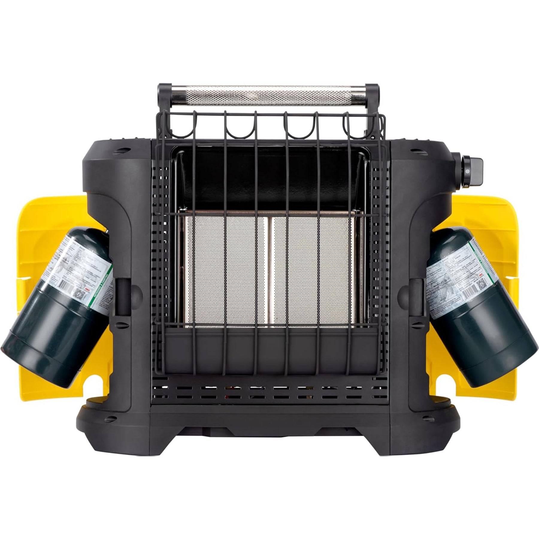 • Ideal for camping, patio gatherings, garage work, or emergency heating, this heater operates on (2) 1-pound LP tanks or can connect to a 20-pound tank for longer use