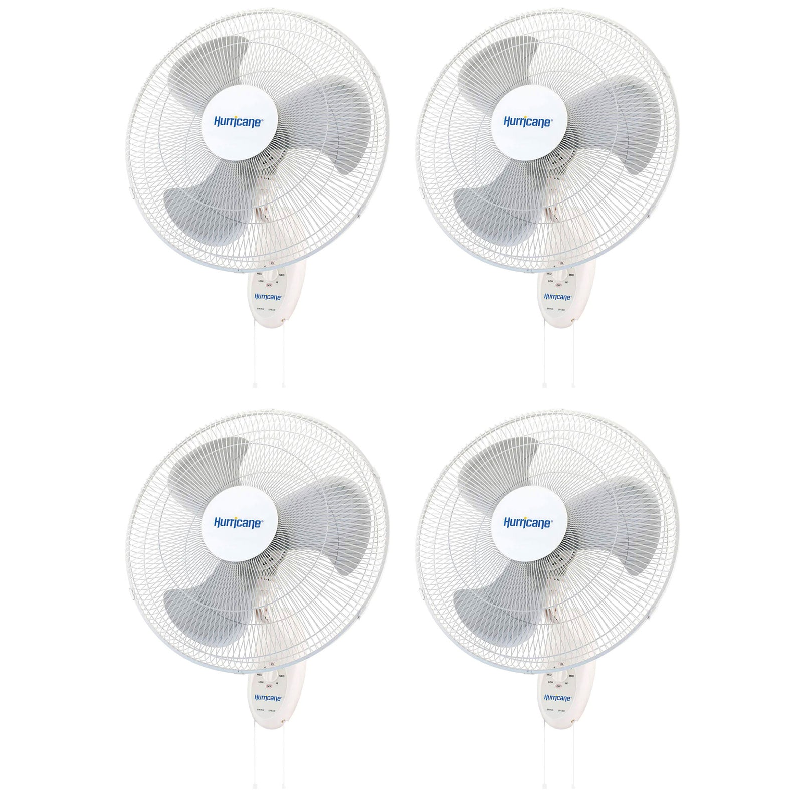 Hurricane Supreme 18" 90 Degree Oscillating 3 Speed Wall Mounted Fan, (4 Pack)
