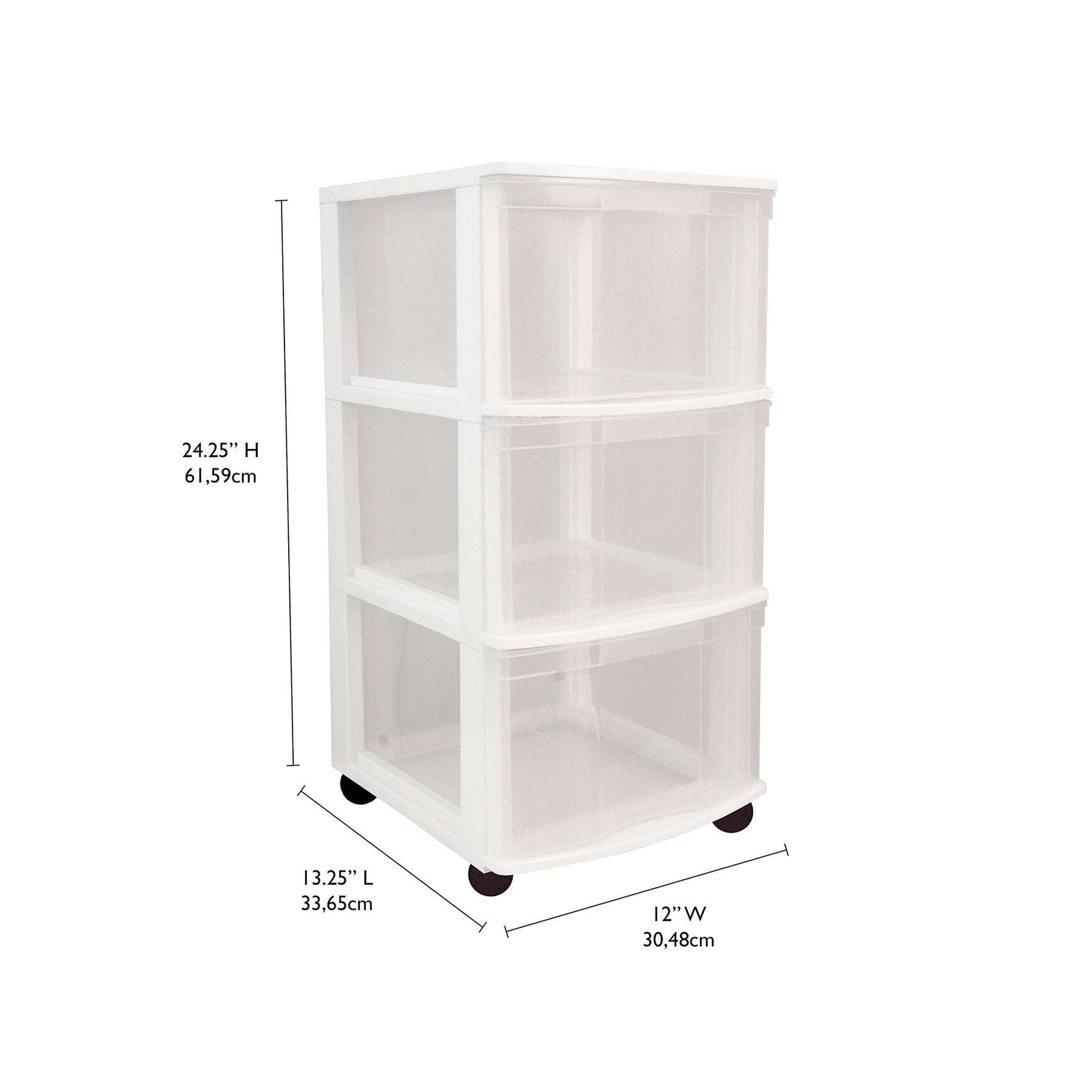 Combining simplicity and function for easy storage, this kitchen storage unit is easy to maintain and wipe down with soap and water to keep it looking clean and fresh. The furniture is a valuable addition to your bedroom for clothes storage or as a shoe organizer or purse organizer, or use it for your bathroom, craft room, or garage. Offering convenient storage solutions for anywhere in your home, this plastic drawer storage unit is a space-saving and practical addition to your home. Measuring 13.25 inches long, 12 inches wide, and 24.25 inches tall, you get ample room and deep drawers for handling all of your organization and storage needs. Thanks to the removable swivel casters, you can effortlessly roll and transport the system from one room to another, making it highly versatile and adaptable to your needs.