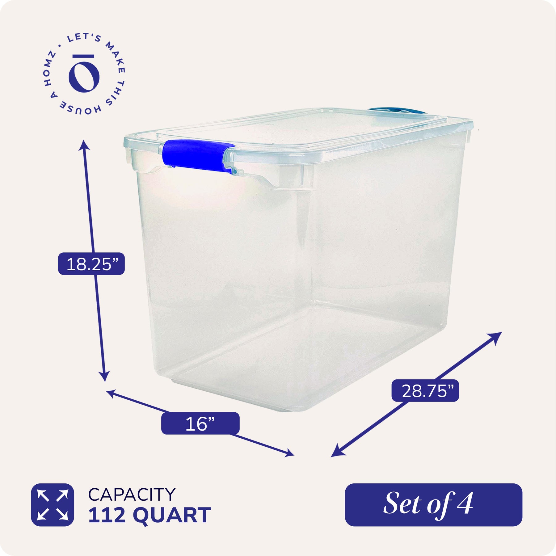 Homz 112 Quart Heavy Duty Modular Stackable Storage Containers, Clear, 4 Pack