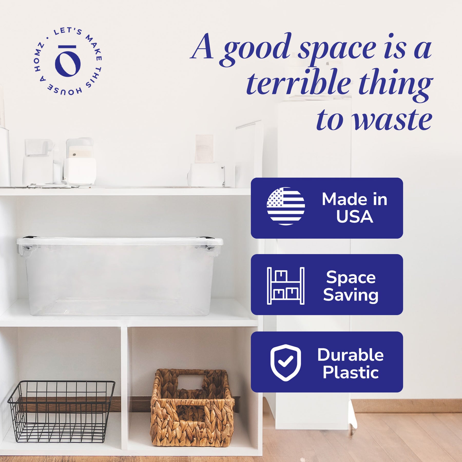 Get the most out of your space with this set of 2 Homz 64-Quart Large Plastic Storage Container Bins. Perfect for creating extra space and protecting holiday decorations, out-of-season clothing, and other home goods from dust and debris.