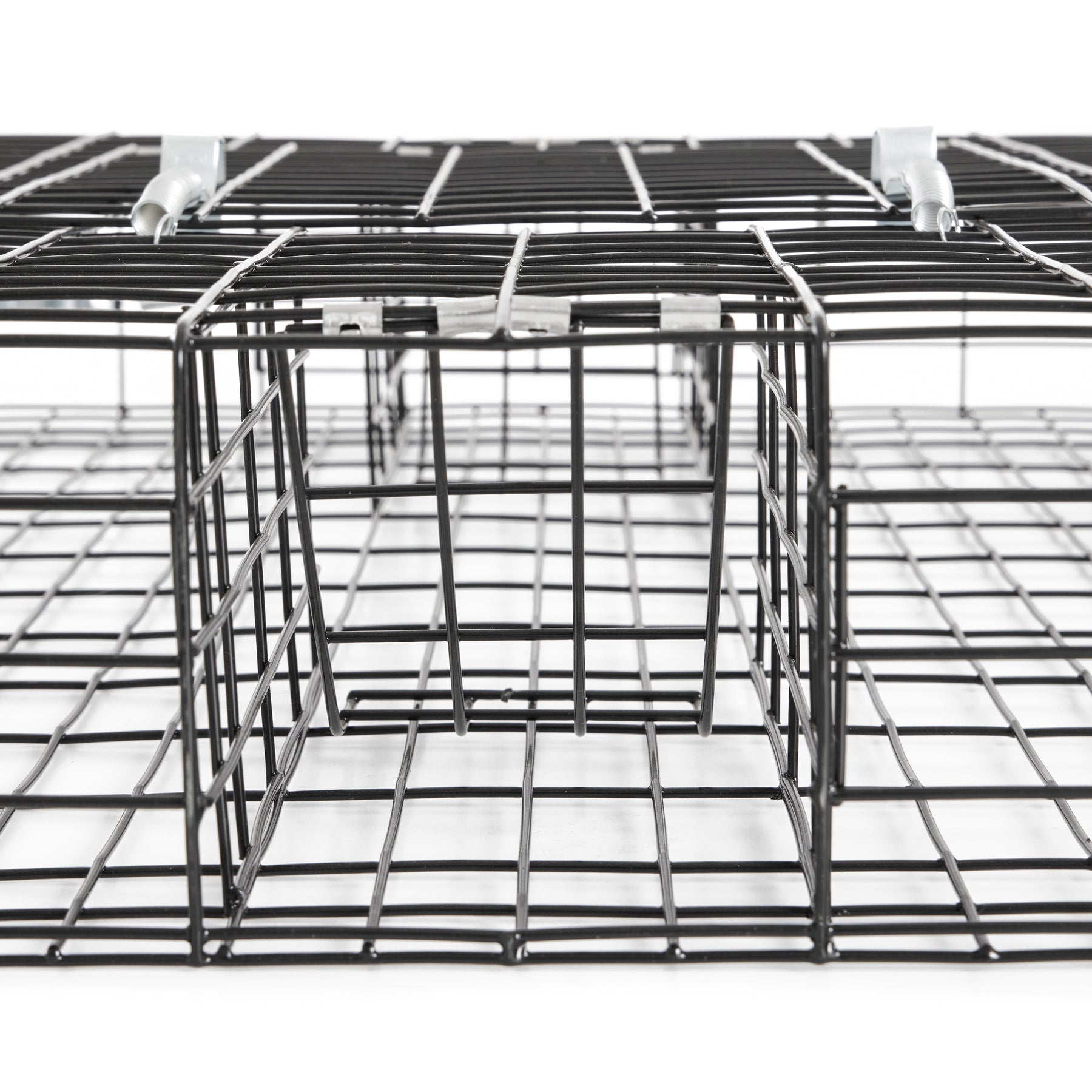 In the morning, the catch-and-release small animal cage has a compact design that's easy to fit in your truckbed, trunk, or backseat to take to animal control or a wooded area that's far from your vegetable patch. An easy-open top lets you quickly and easily free the container creatures without worrying about your fingers getting nibbled. Choose the humane option for unwanted guests with the 4-Pack Rugged Ranch Squirrelinator Live Squirrel Chipmunk Metal 2 Door Trap Cage.