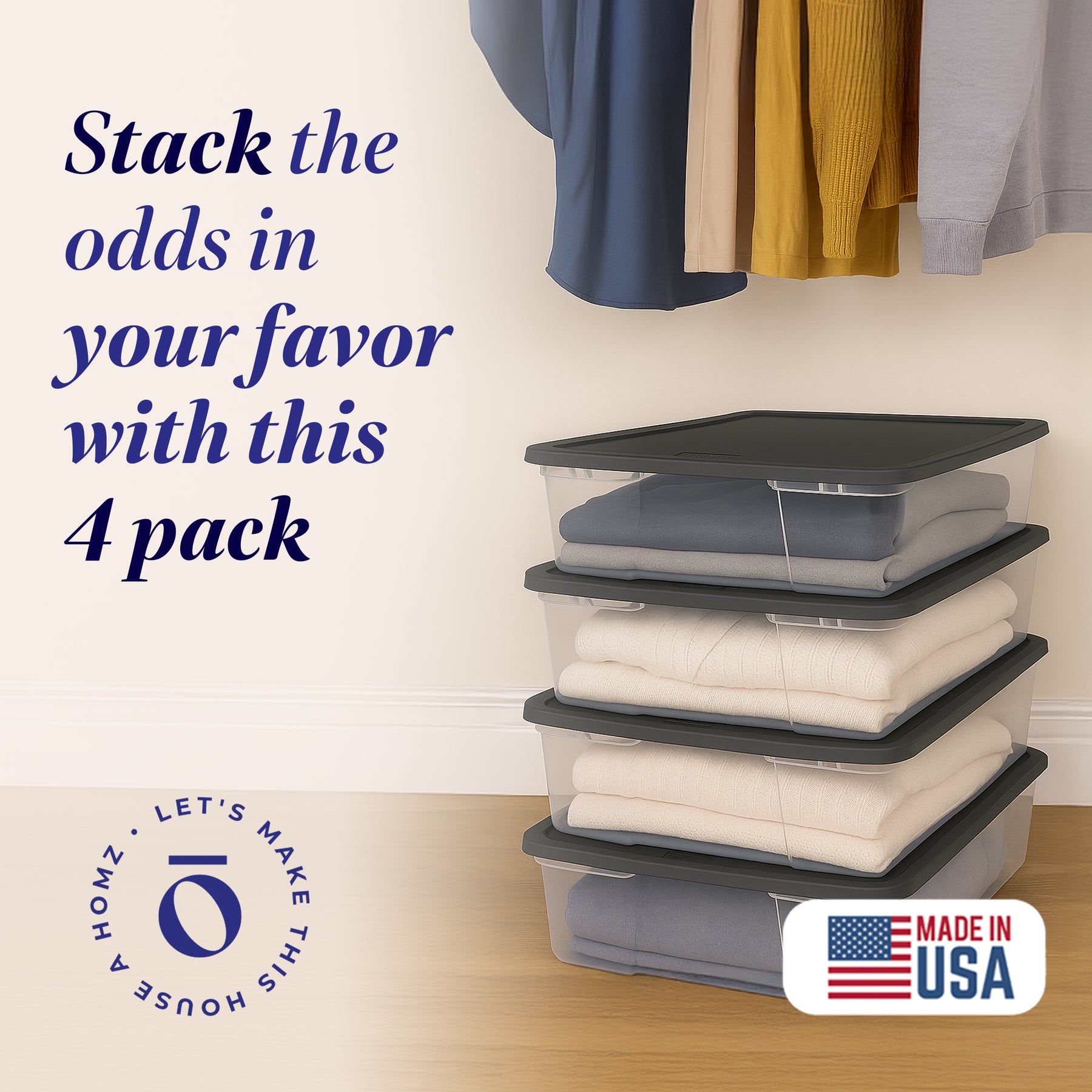 Organize and declutter your space in an instant with the 4-pack of Underbed Plastic Storage Container Bins from Homz.