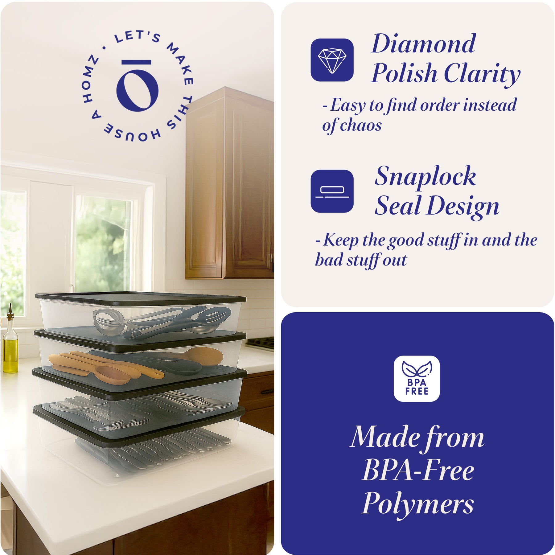 Homz Snaplock 28 Quart Clear Organizer Storage Container Bin with Lid, (4 Pack)