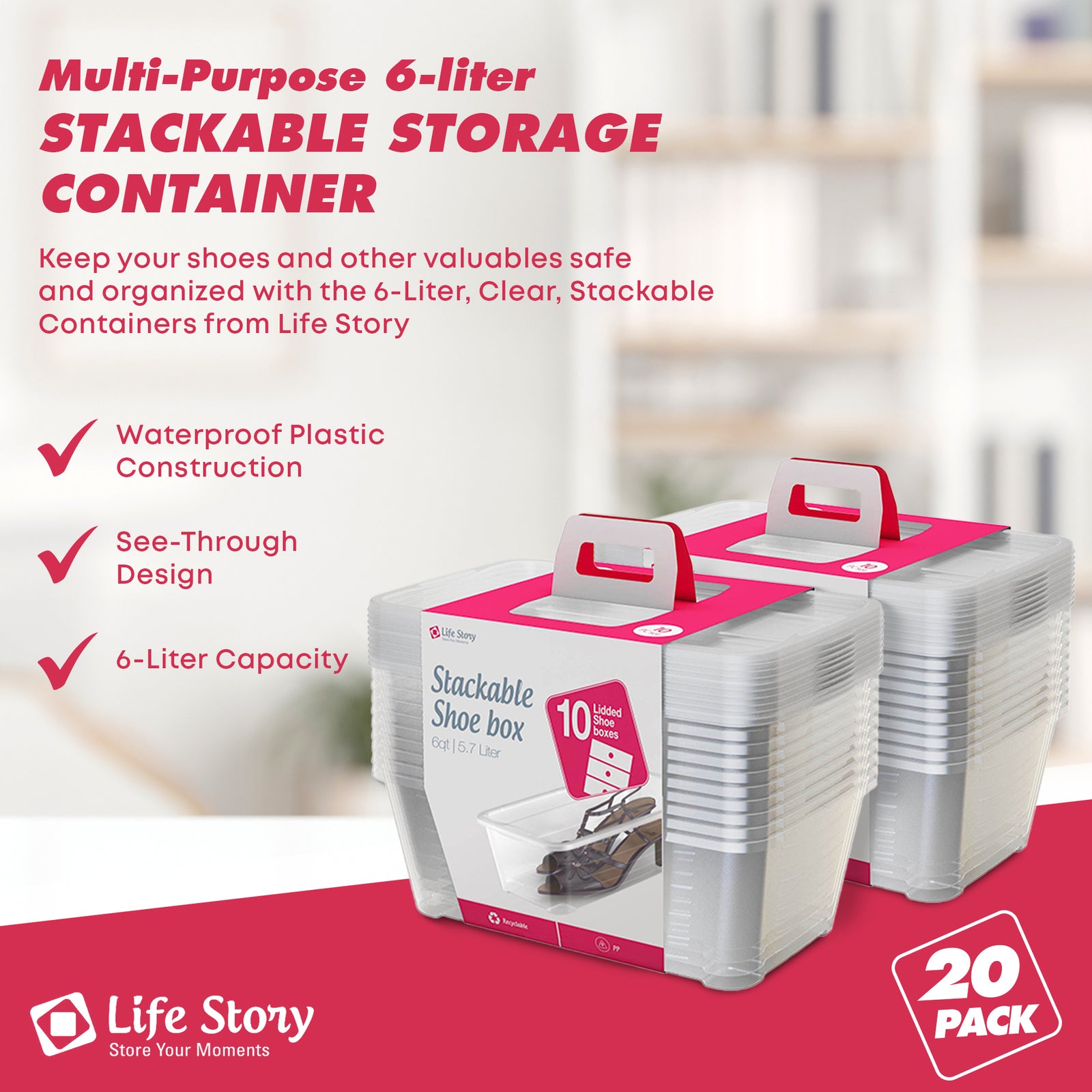 Life Story 6L Shoe and Closet Storage Box Stacking Containers, Clear (20 Pack)