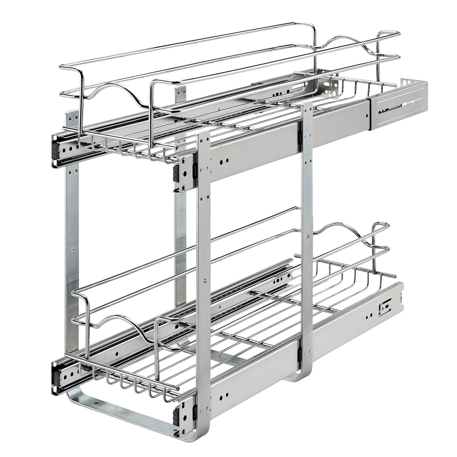 Make the most of your cabinet space with the Rev-A-Shelf 2-Tier Wire Pullout Cabinet Drawer Basket.