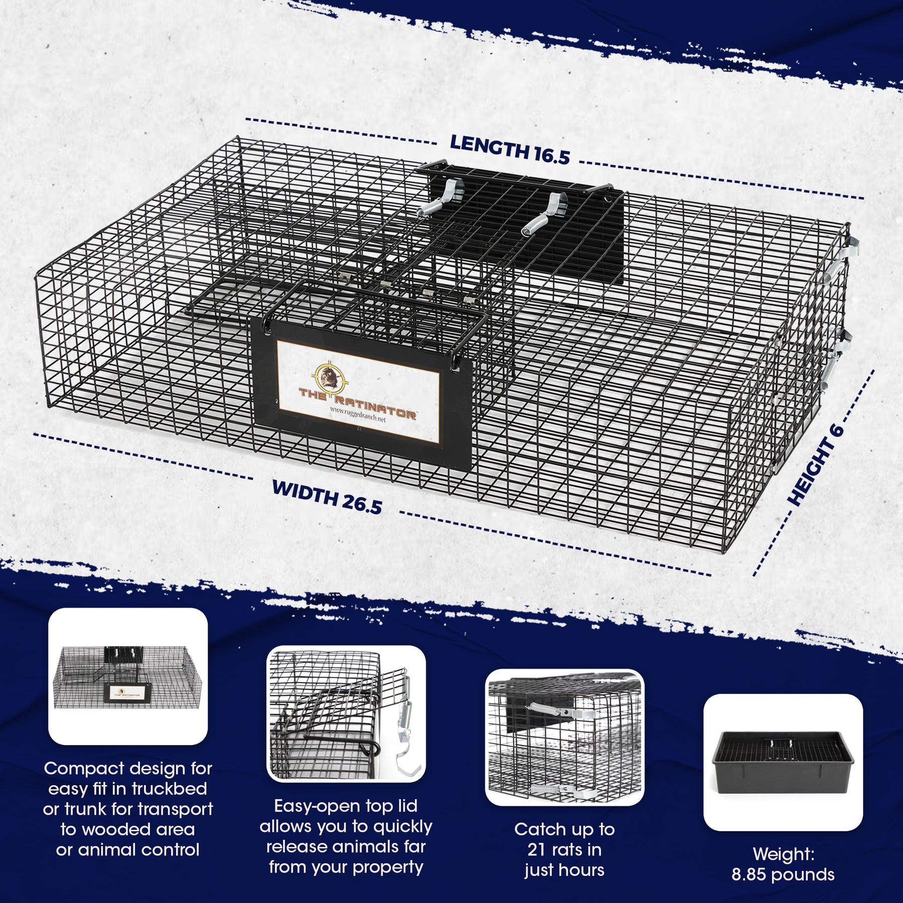 Your pantry shows signs of nibbles and there's droppings in the cupboards. It's time to employ Rugged Ranch Ratinator Live Rat Squirrel Chipmunk Metal 2 Door Trap Cage and set some boundaries with those wintering rats.