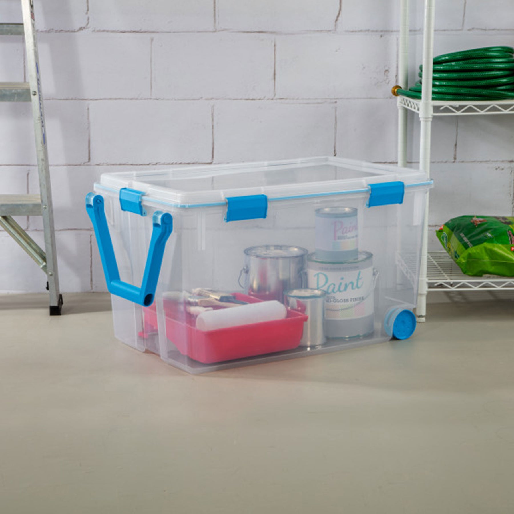 Enjoy the peace of mind organization can bring to your home with the 120-quart clear plastic wheeled storage containers with gasket latched lids from Sterilite.