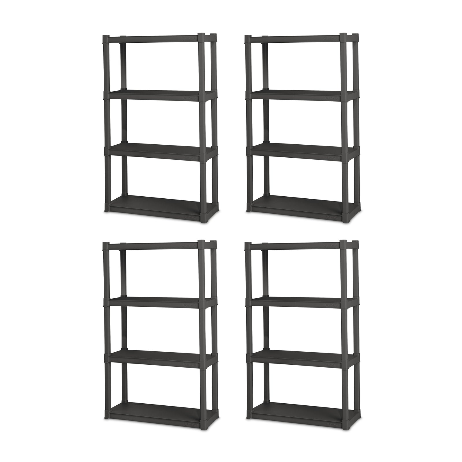Sterilite Plastic Indoor Outdoor 4 Shelf Durable Shelving Unit, Gray, 4 Pack