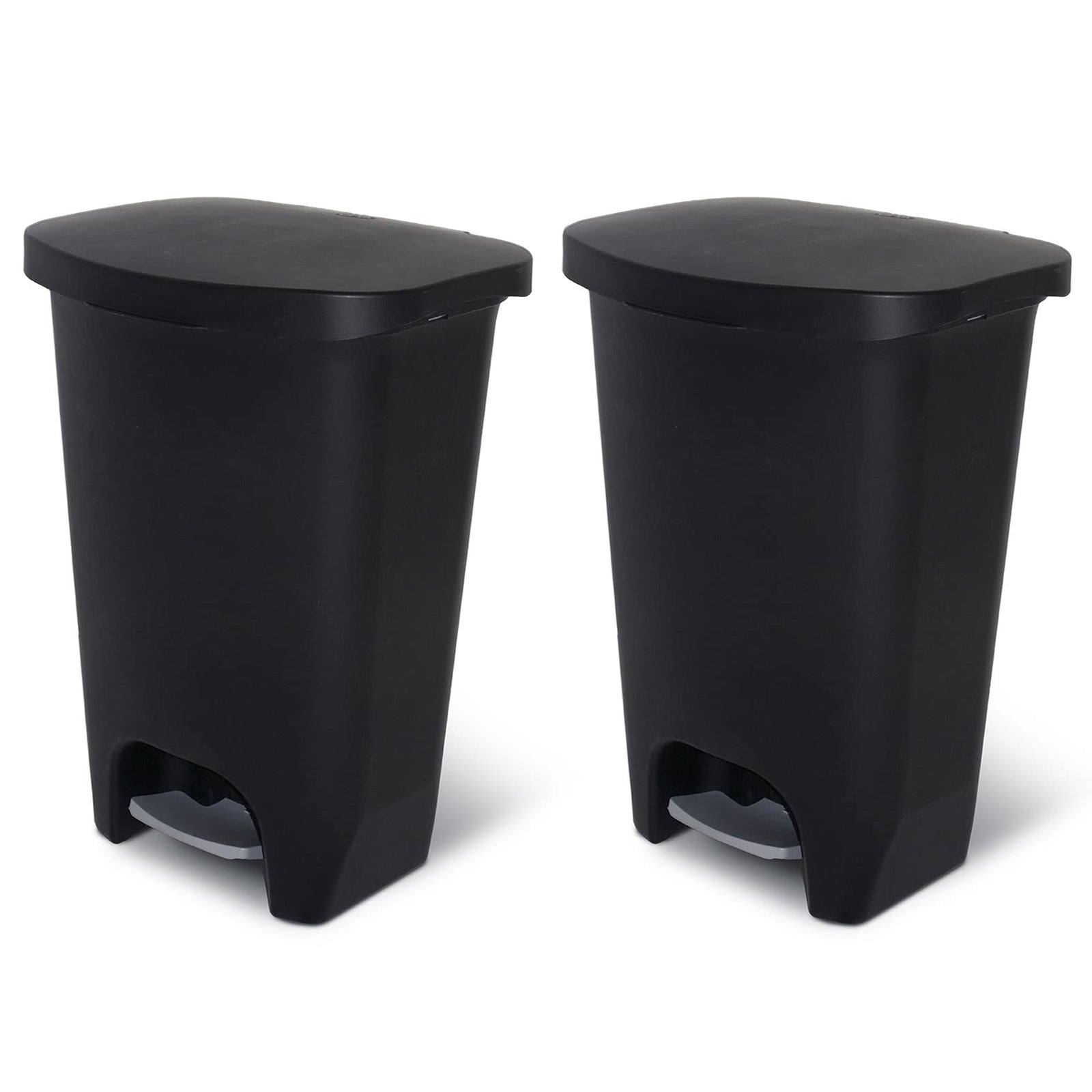 Glad Kitchen Trash Can with Lid and Garbage Bag Rings, 13 Gal, Black, 2 Pack